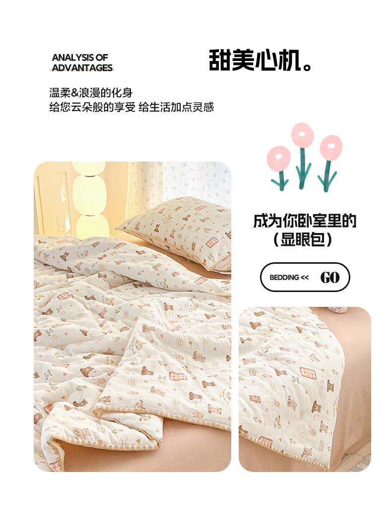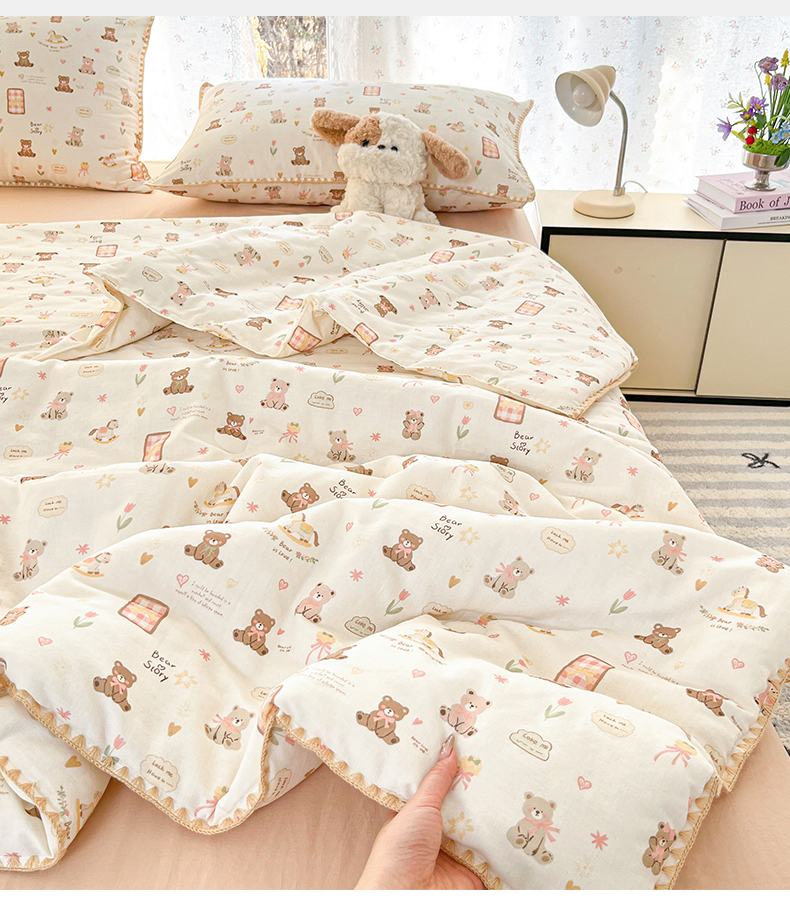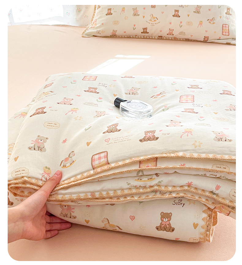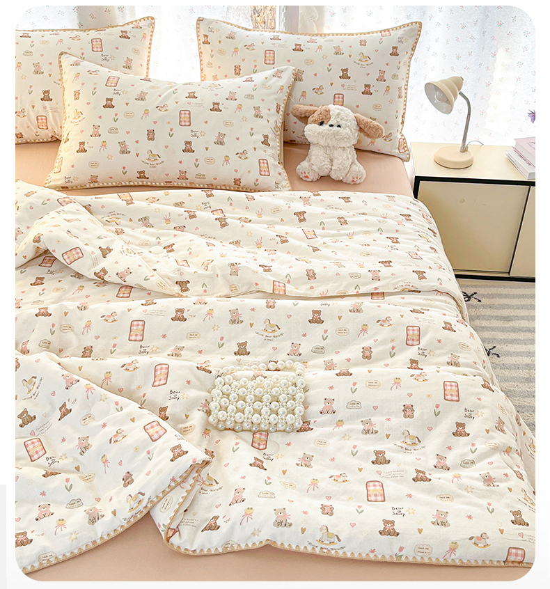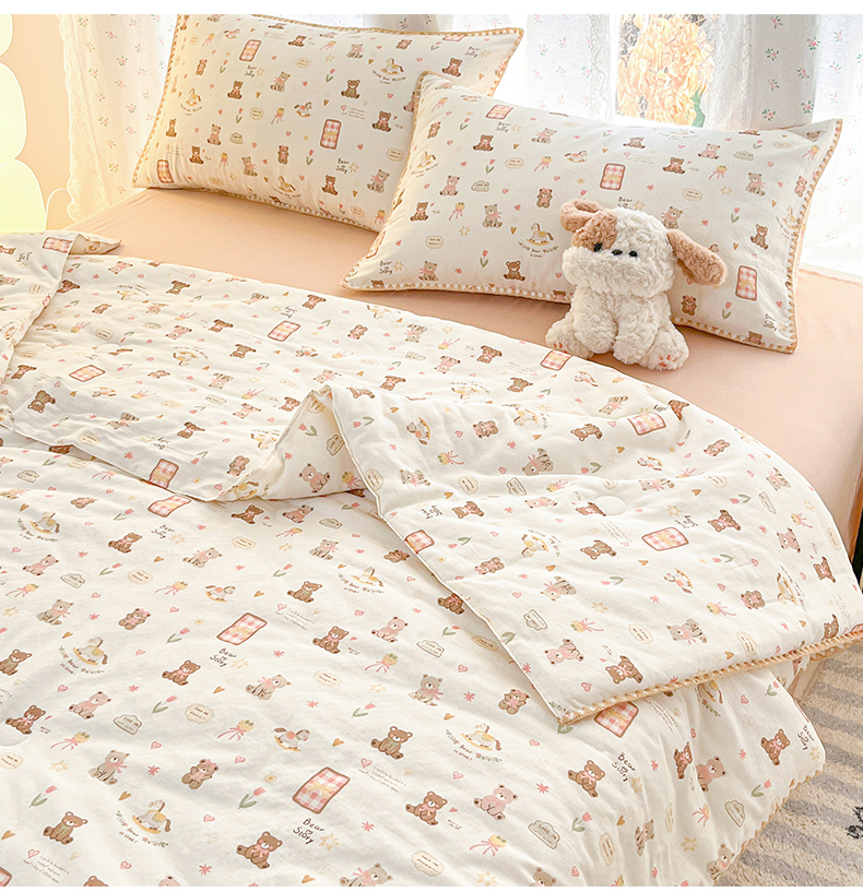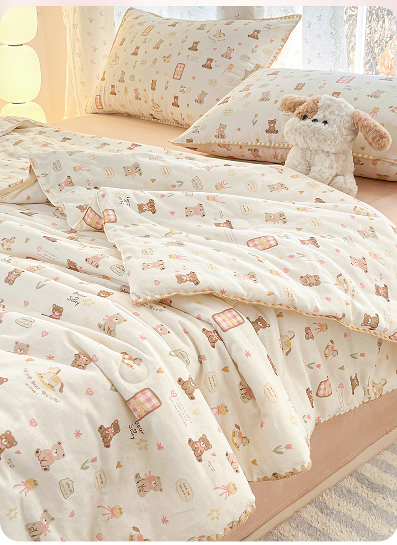 盛秋家纺 2026新款三角针水洗棉贝壳边印花夏被系列 治愈小熊+奶茶