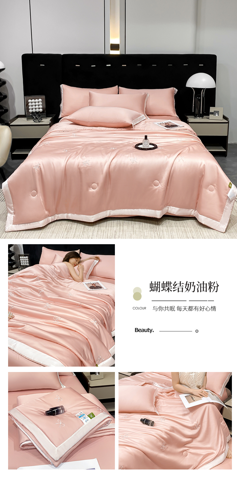 • 91家纺网 家纺一手货源 找家纺 益多眠 2026新款水洗真丝刺绣夏被夏凉被空调被四件套 花朵奶白粉