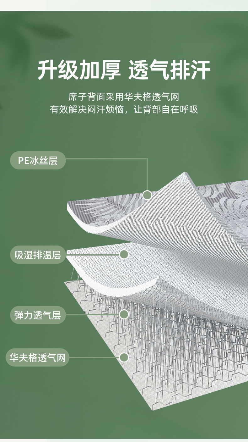 2023新款夏日冰点-冰藤双面席凉席藤席竹席冰丝席乳胶席,咖色,蓝色,绿色,香槟