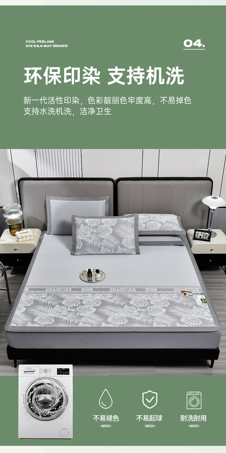 (总)小牛席业 2026新款小冰块大象凉感冰丝席(床笠款)凉席竹席藤席冰藤席乳胶席豆豆席,绿色,粉色,灰色,蓝色,香槟
