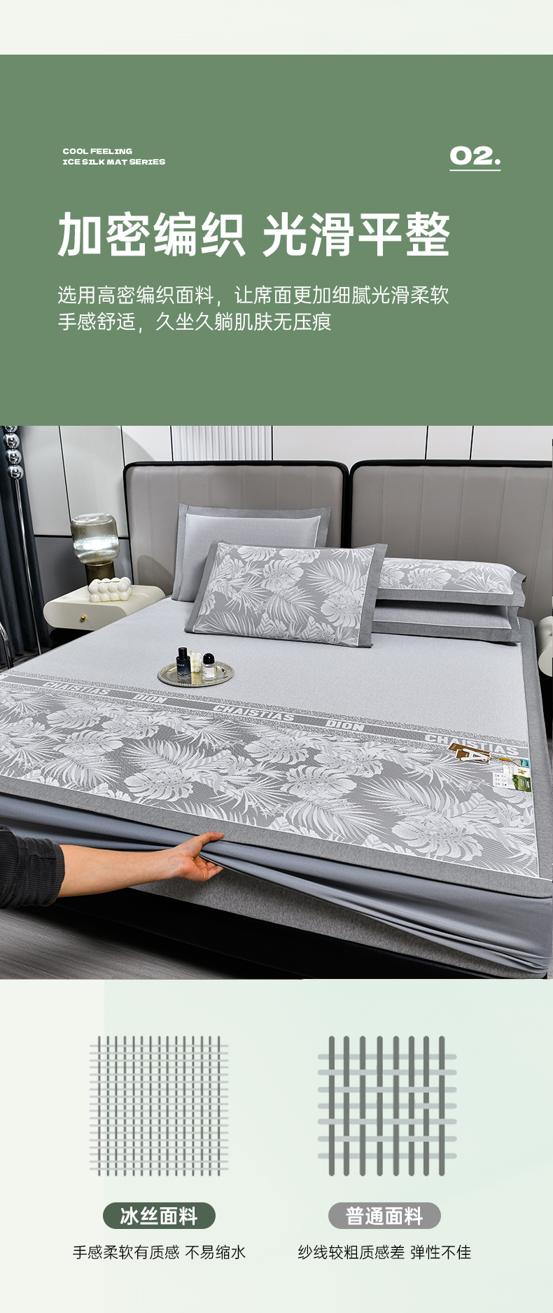 (总)2023新款超精密冰丝席-小斜纹系列-床笠款藤席凉席竹席,粉色,蓝色,绿色,银灰