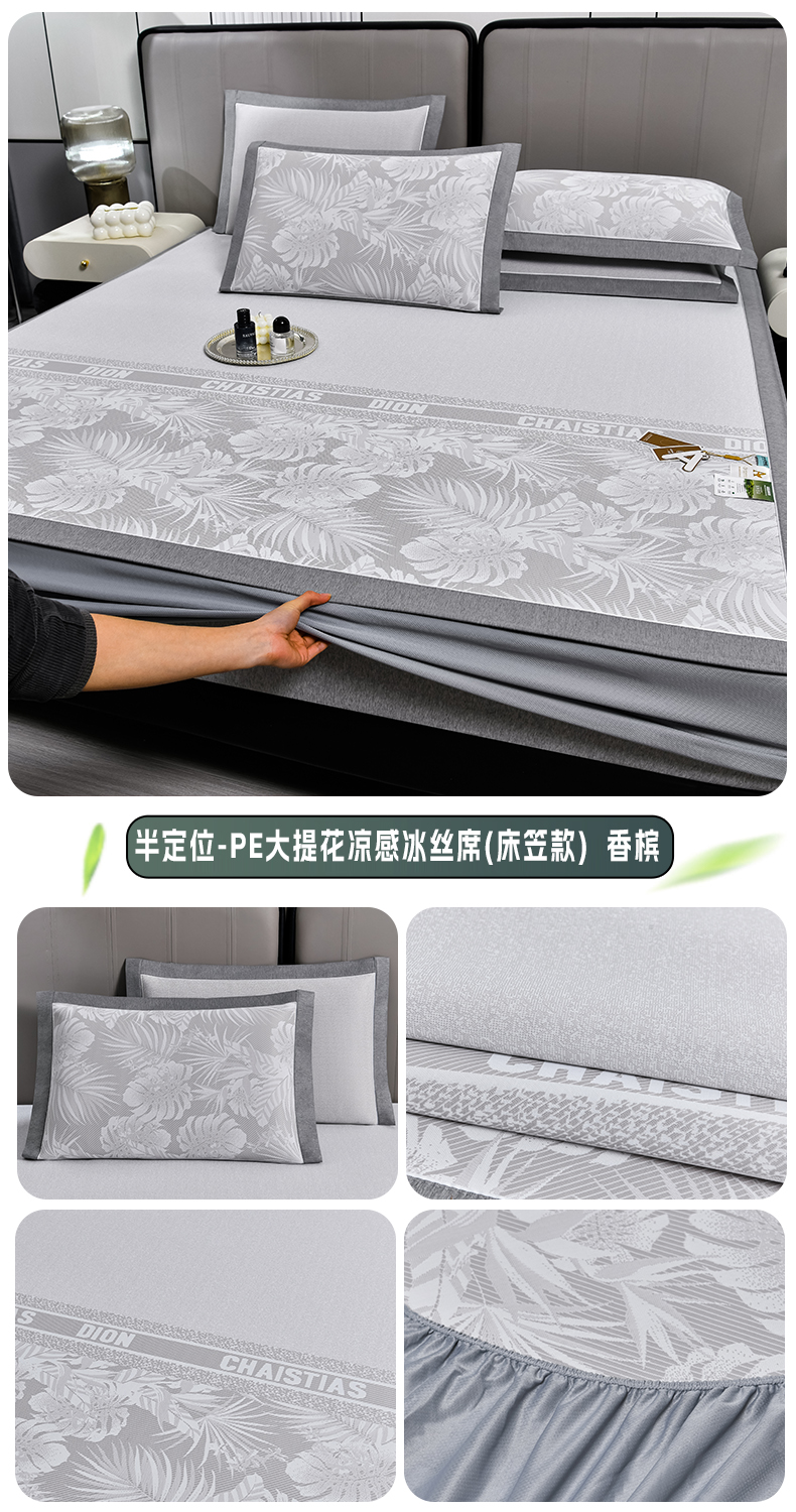 商品名称:小牛席业 2026新款PE半定位大提花凉感冰丝系列(床笠款) 灰色