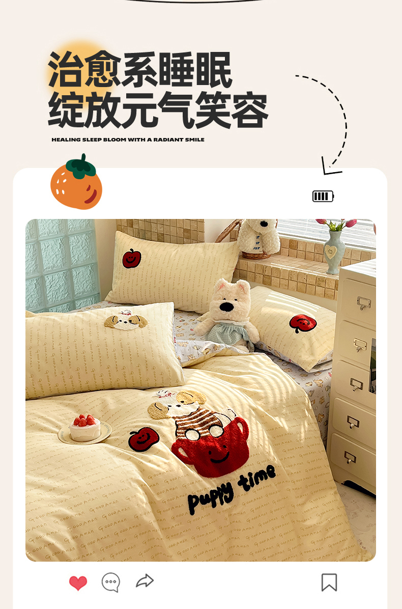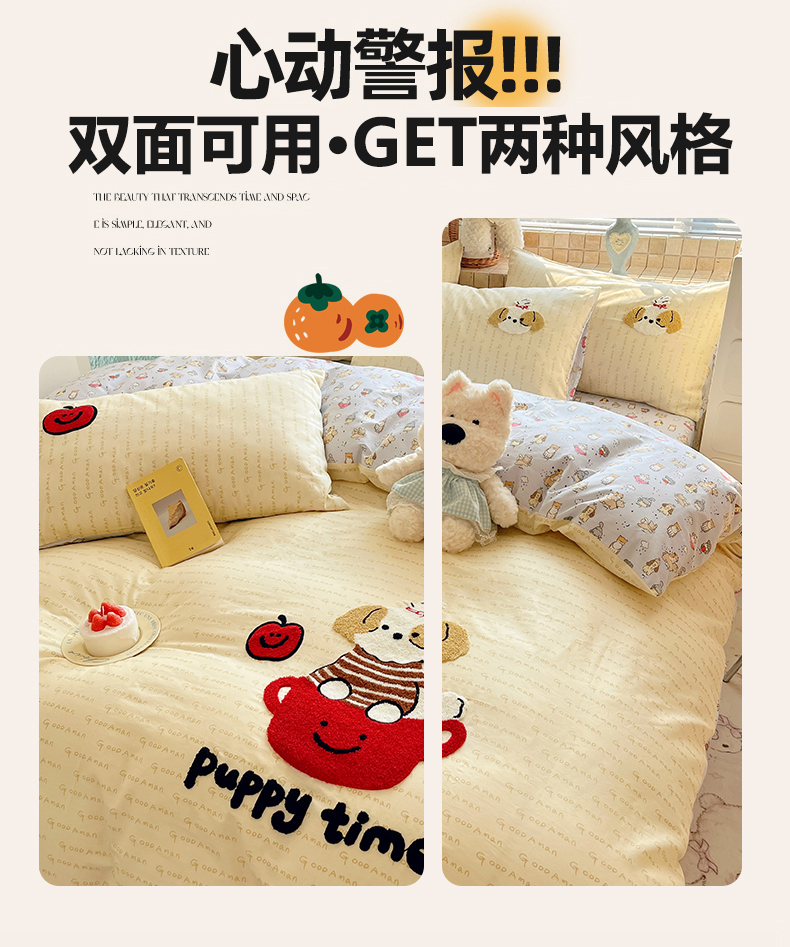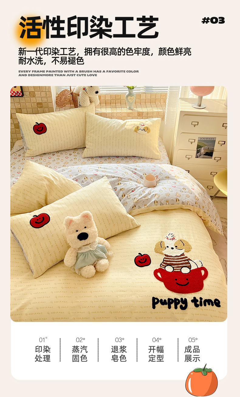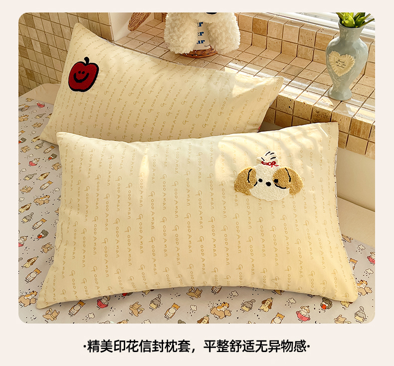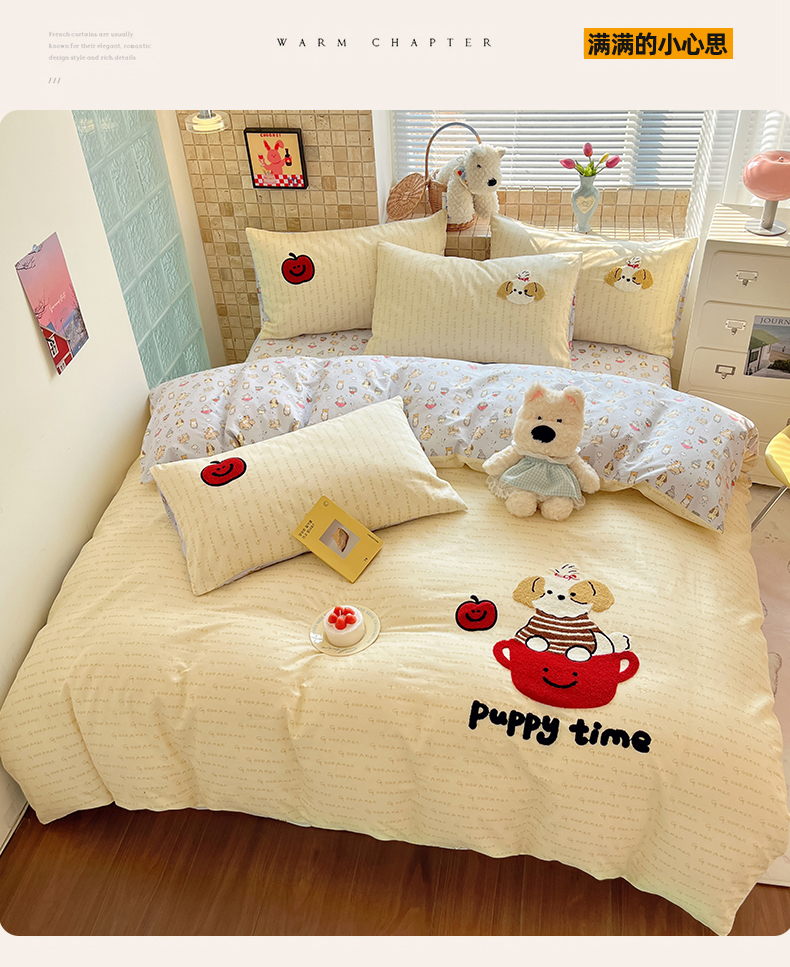 商品名称:寐居家纺 2026新款全棉毛巾绣四件套 奶黄茶犬