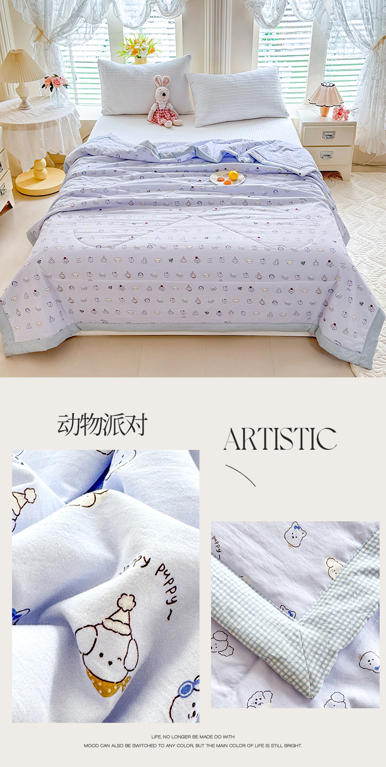 (总)优贝家纺 2026新款水洗棉云朵棉双层纱手包边抗菌夏凉被空调被 被子被芯,动物派对,春日萌兔,蝴蝶结,花间梦,花香丽影,腊肠狗,奶咖波点,绅士熊,童年回忆,星星小熊