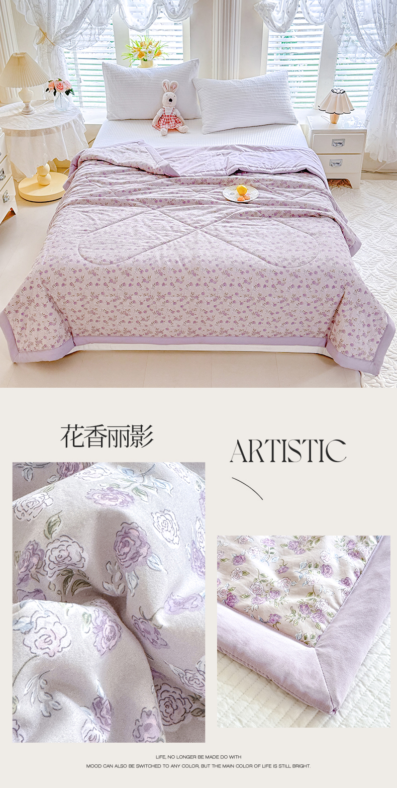(总)优贝家纺 2026新款100%莱赛尔天丝面料数码印花天丝夏被四件套,花开半夏,陌上花开-粉,诺曼花园,倾城