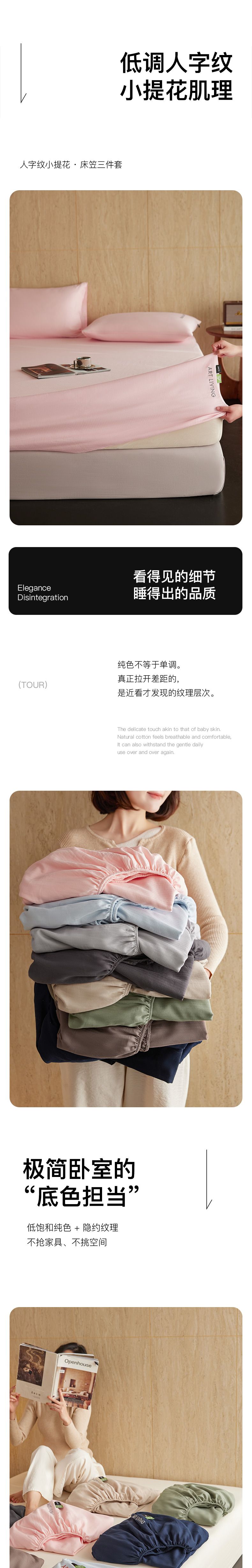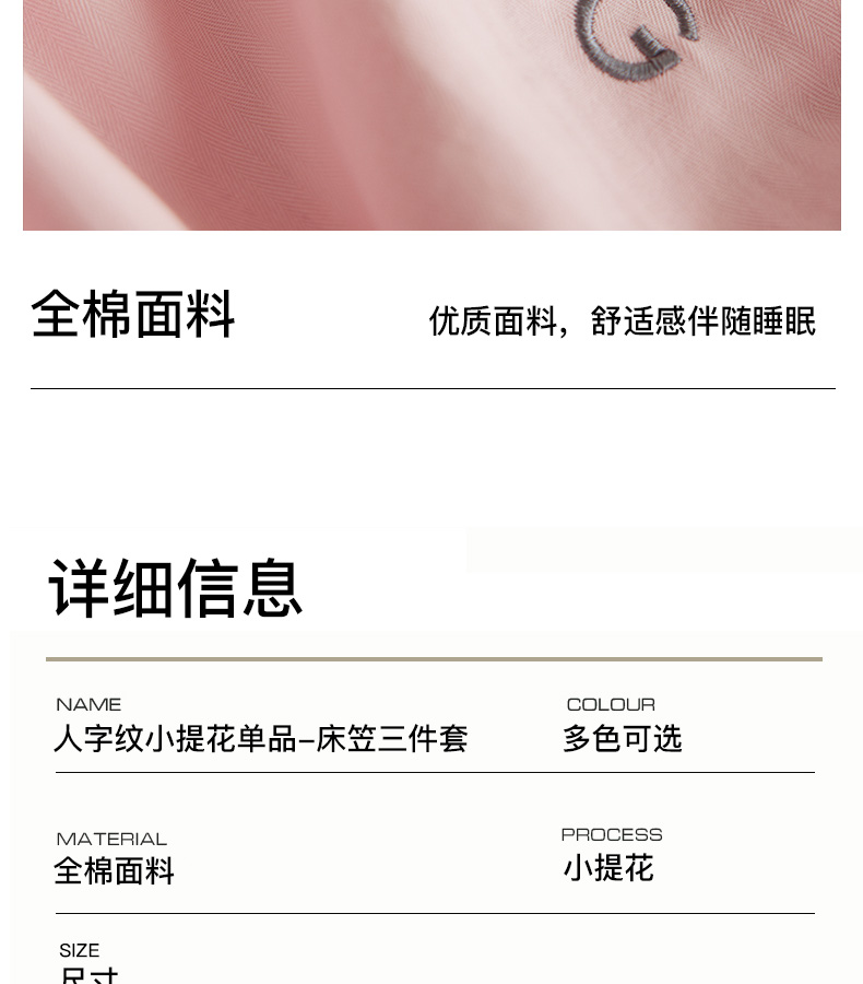 当前位置: 91家纺网 > 商品网购 > 床品套件 > 三件套 > 卡姿家纺 2026春夏全棉人字纹小提花单品-床笠三件套 床笠-山茶粉