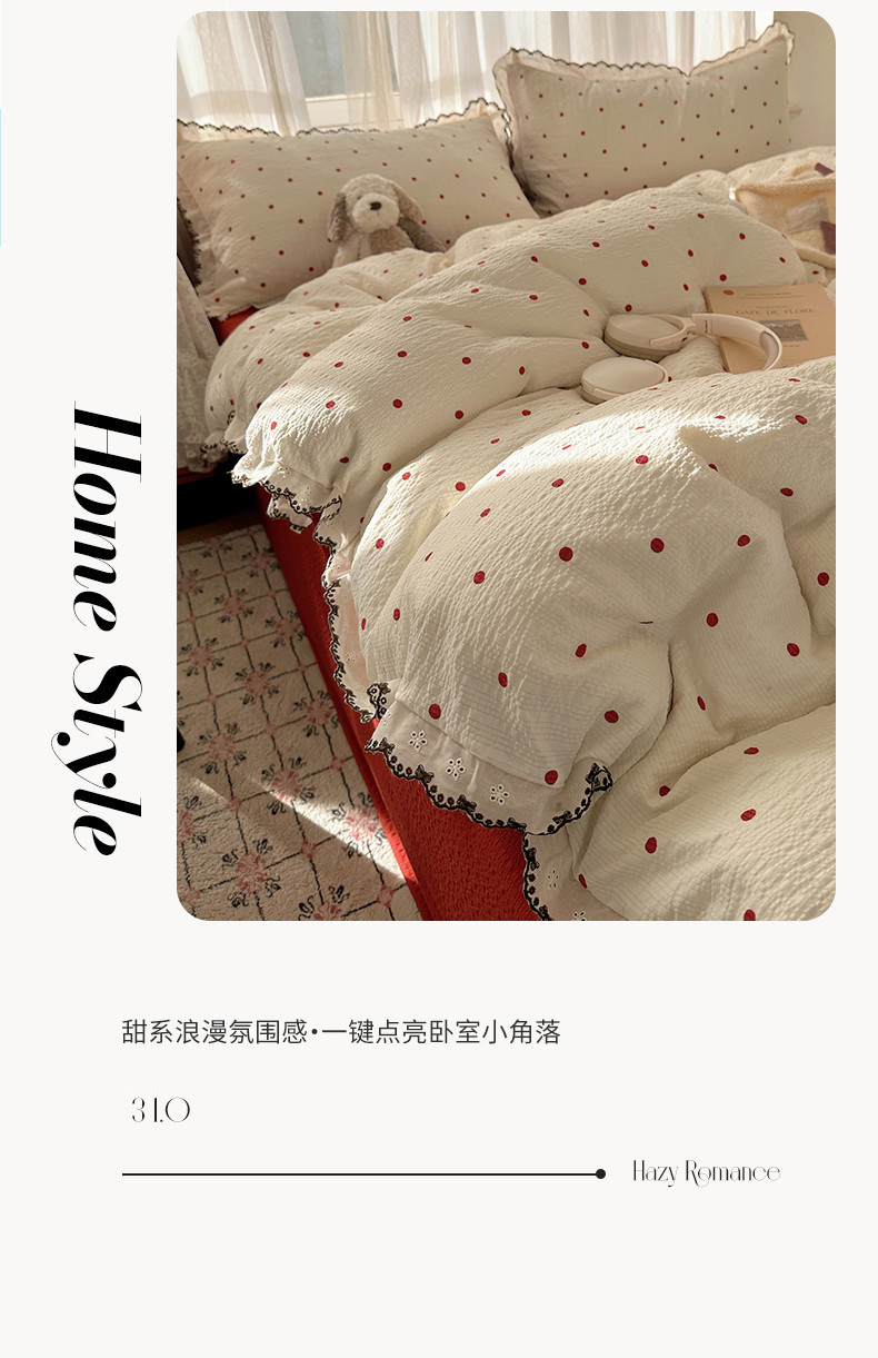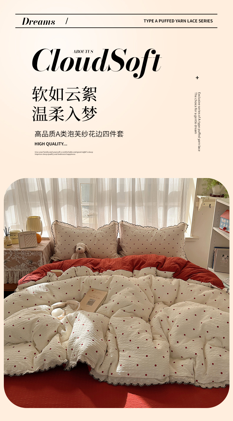 (总)凯洛奇 2026新款高品质A类泡芙纱甜栗花边套件系列一小红书推荐,波点情书,春日花田,粉雾花境,蜜果小筑,奶芙枝蔓,软萌南瓜派,星梦乐园,云眠奶蓝