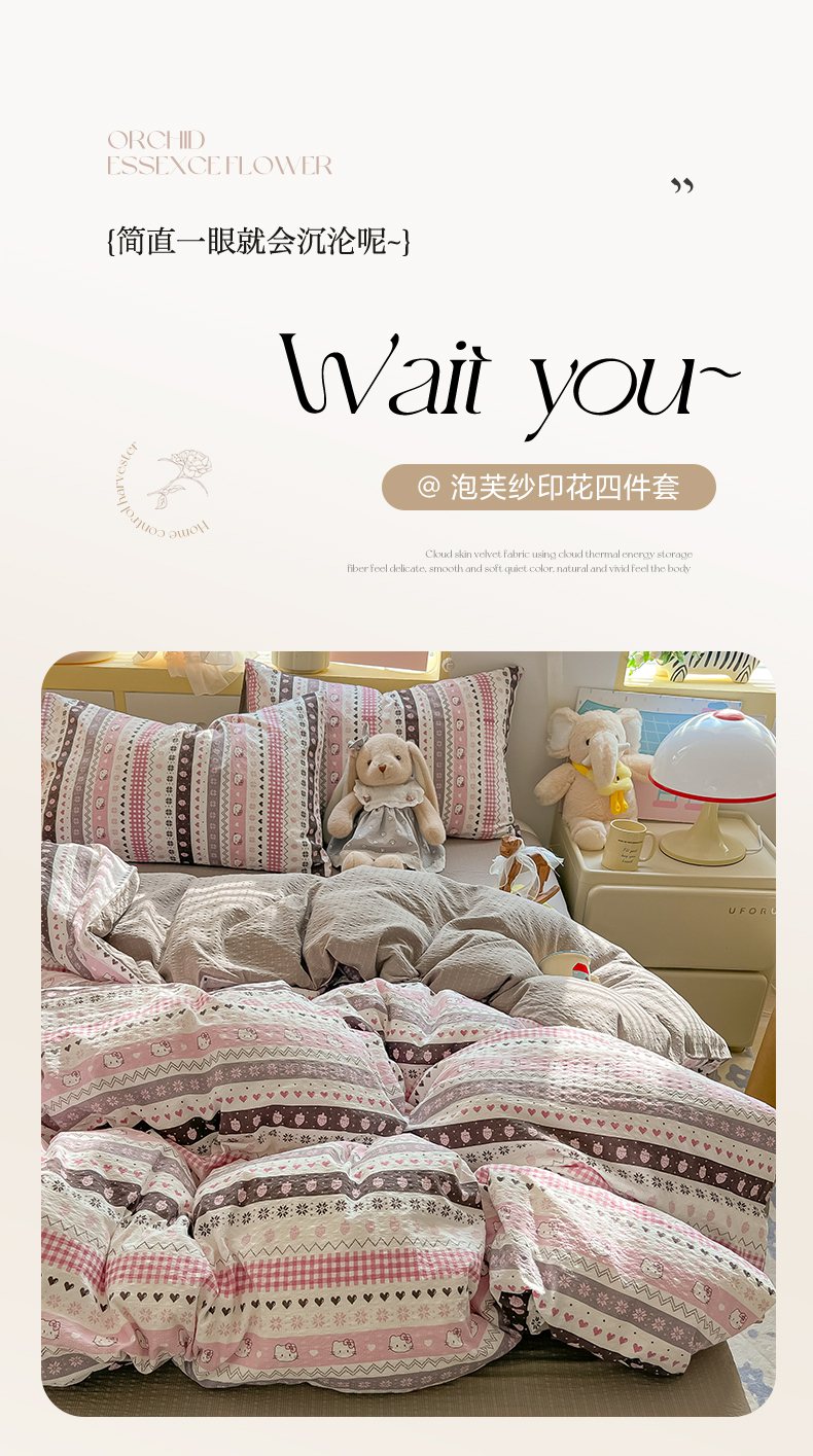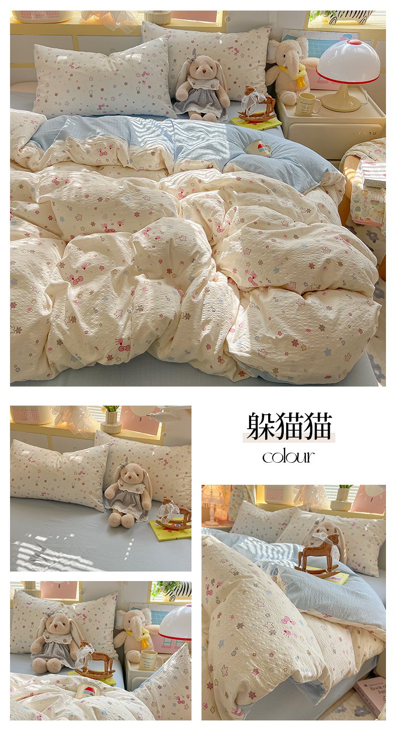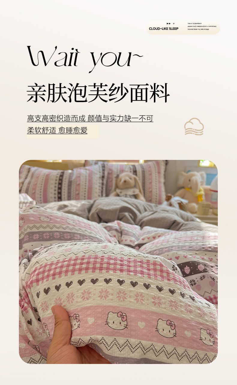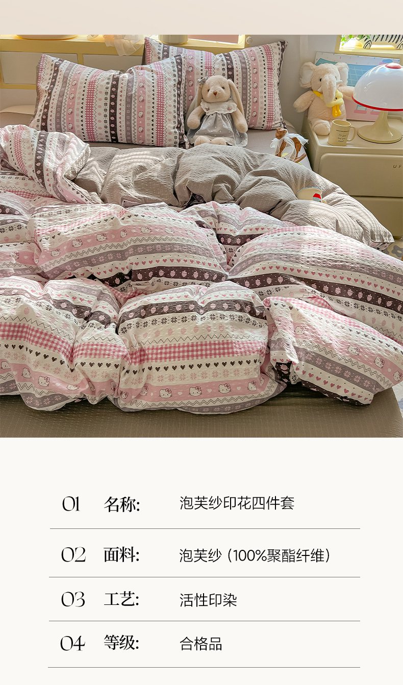 当前位置: 91家纺网 > 商品网购 > 床品套件 > 四件套 > 其它四件套 > 韩巢家纺 2026新款泡芙纱四件套 猫咪集-粉