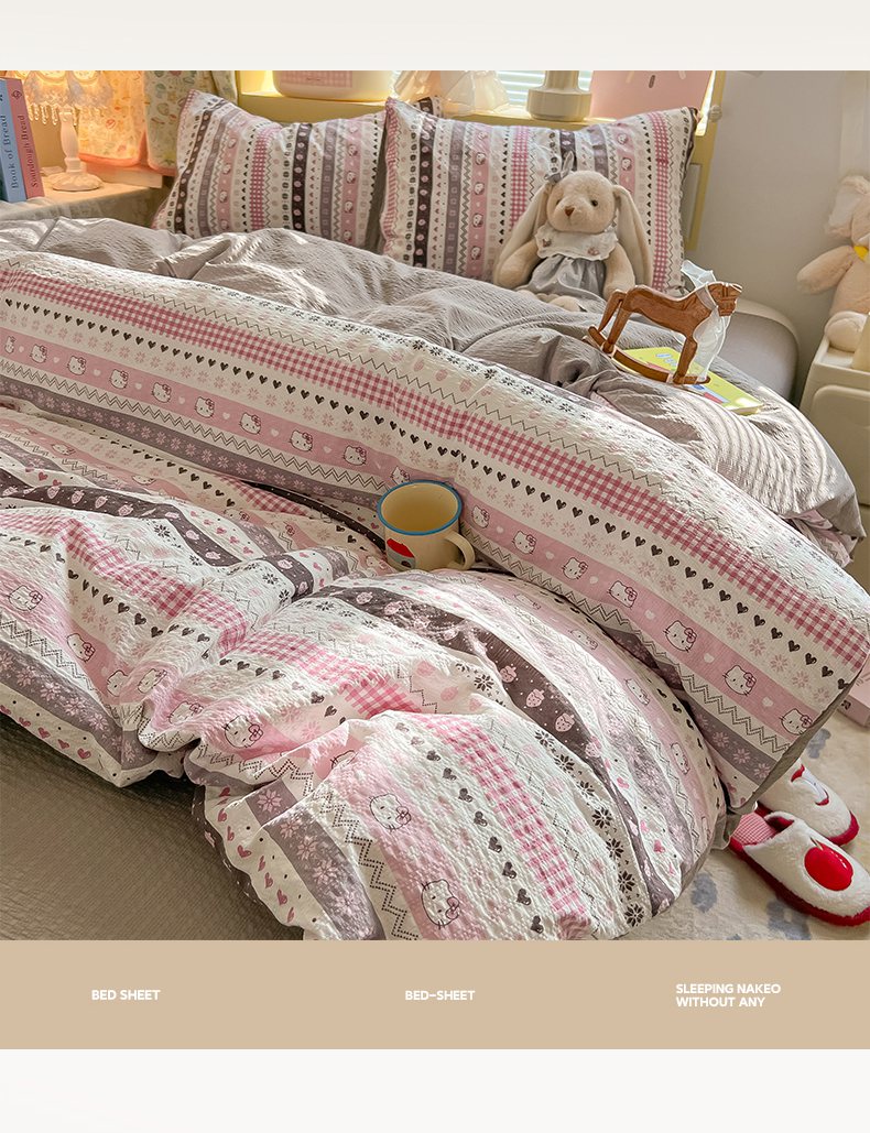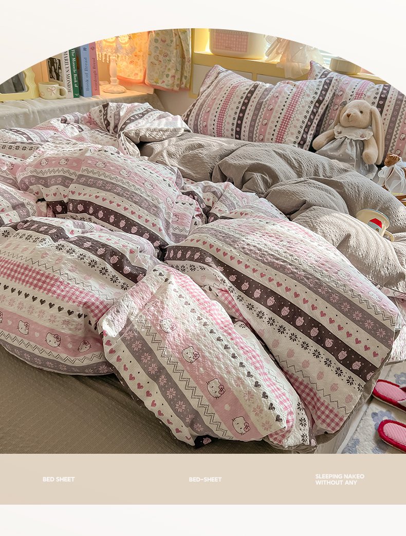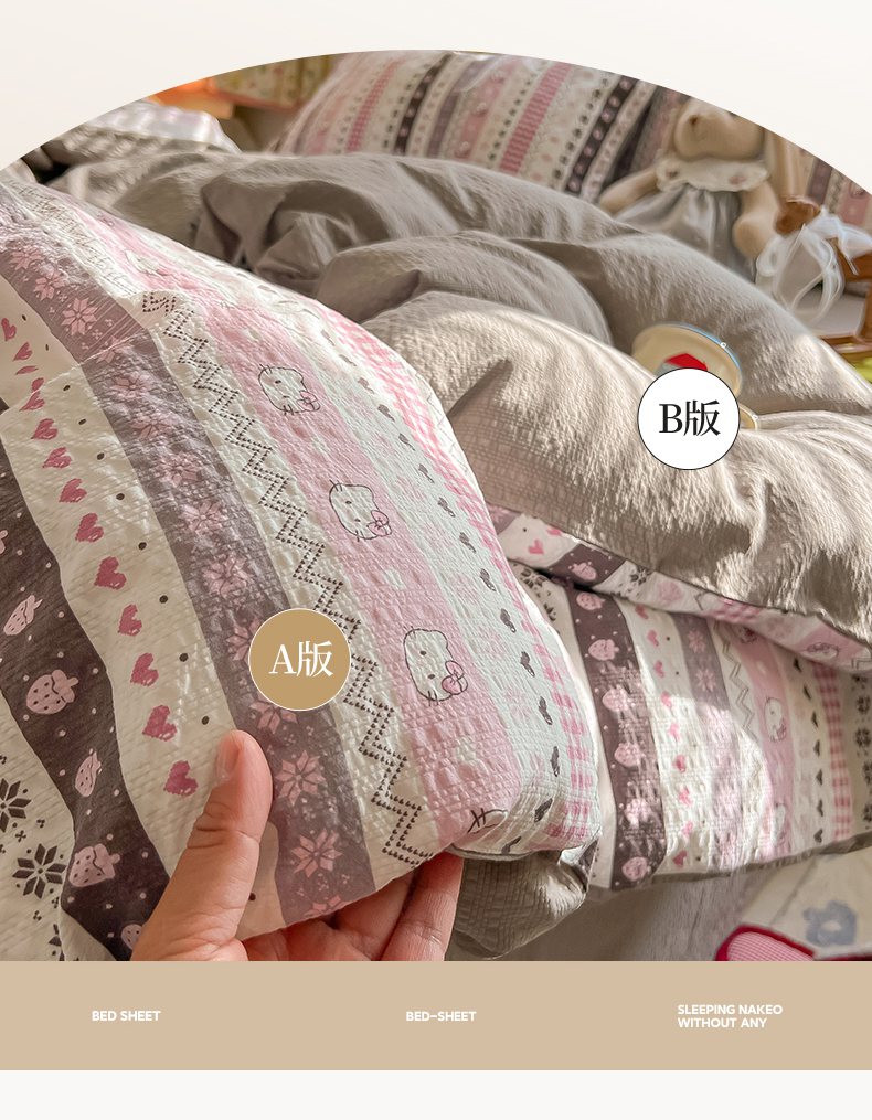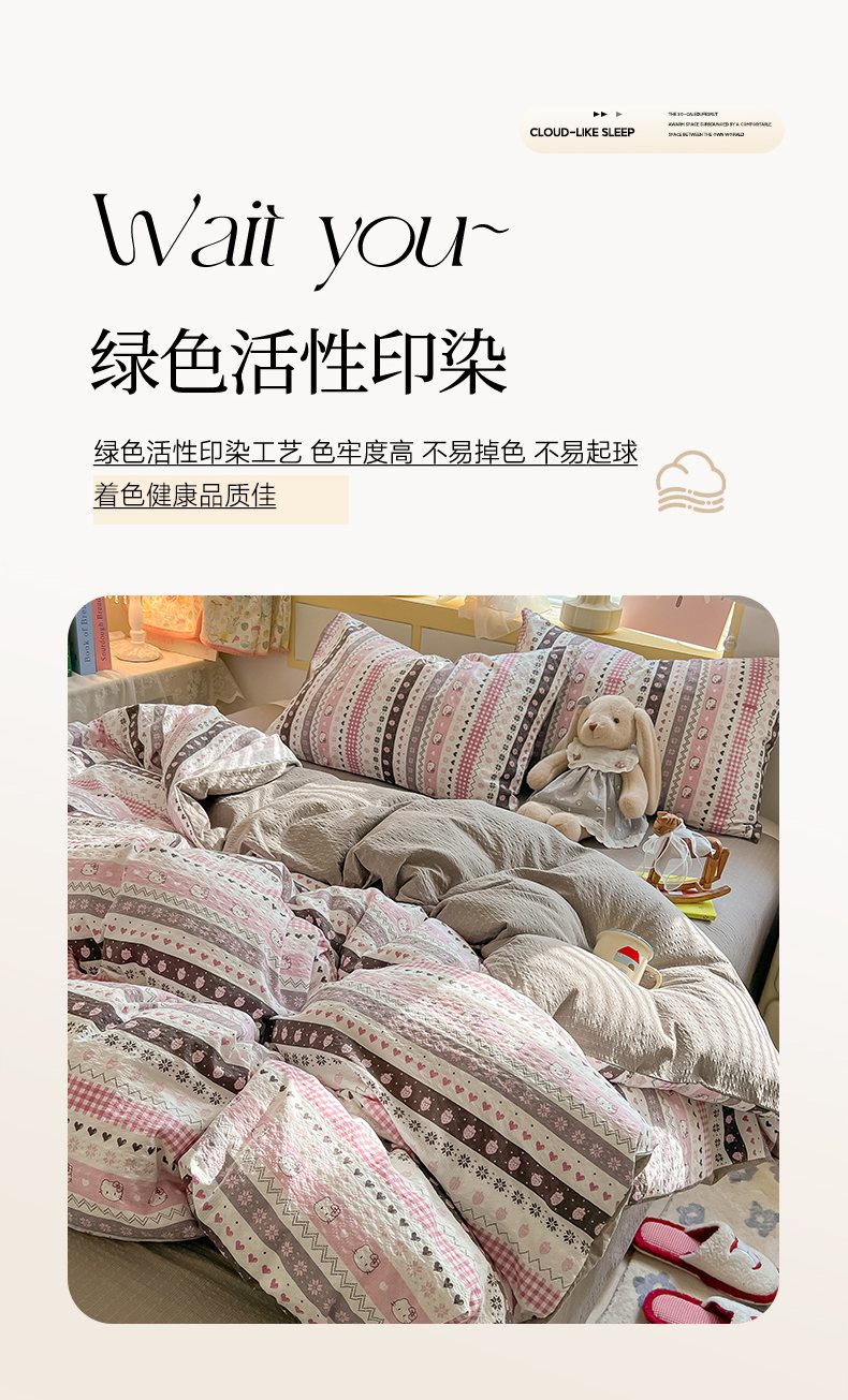 当前位置: 91家纺网 > 商品网购 > 床品套件 > 四件套 > 其它四件套 > 韩巢家纺 2026新款泡芙纱四件套 猫咪集-粉