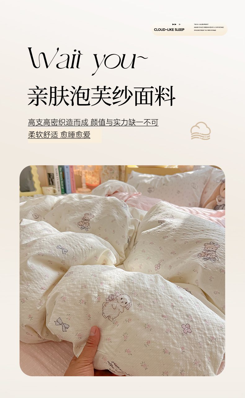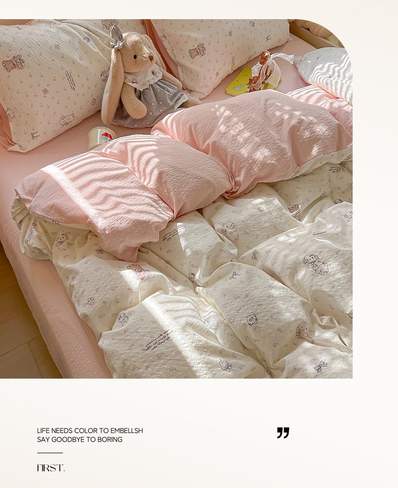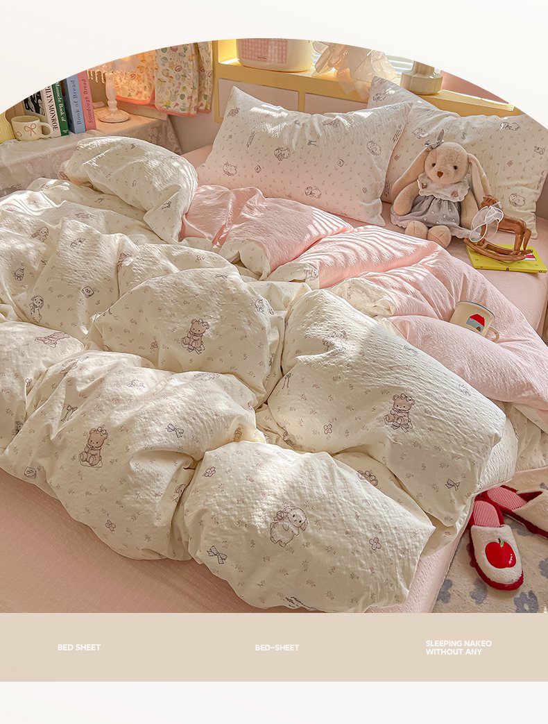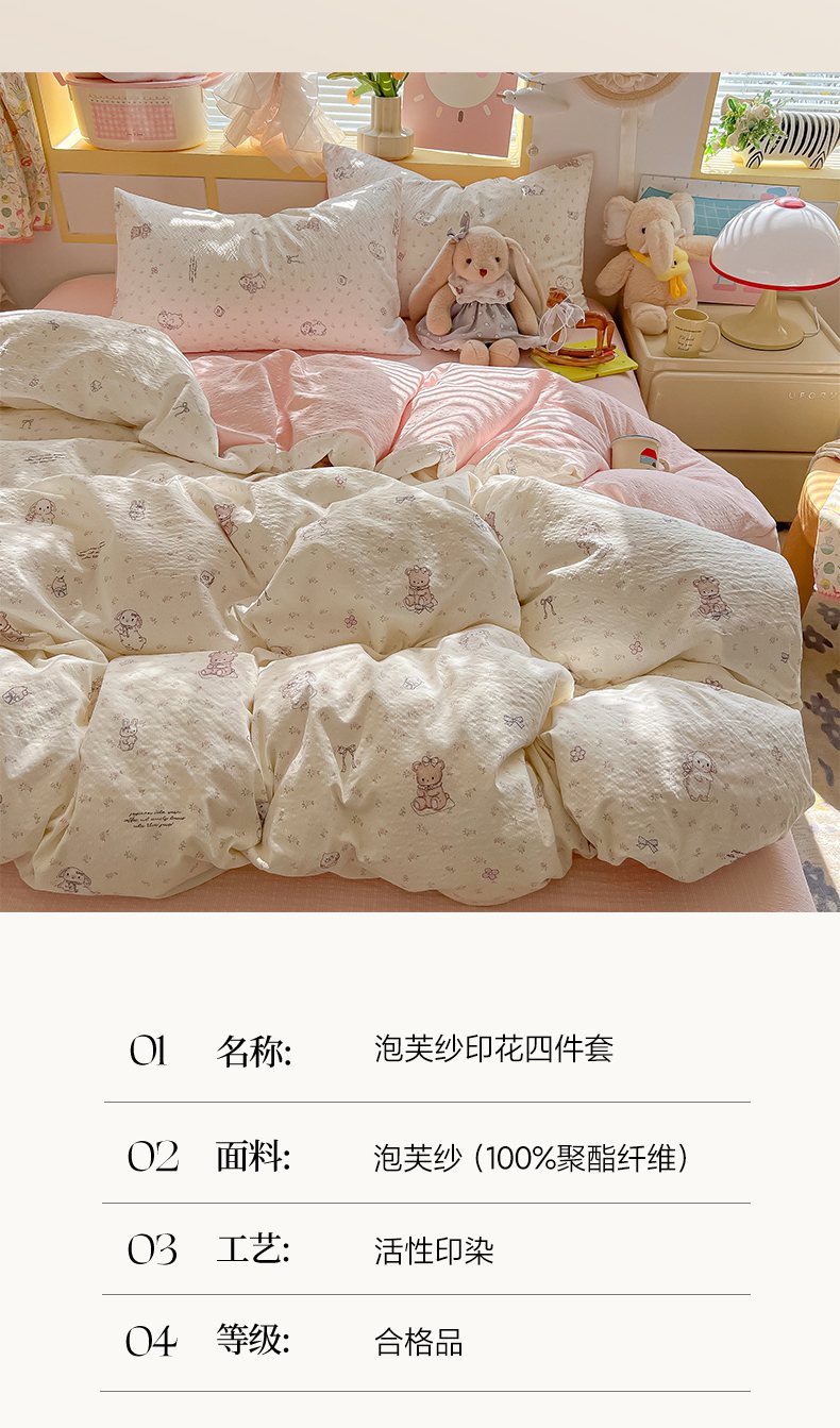 当前位置: 91家纺网 > 商品网购 > 床品套件 > 四件套 > 其它四件套 > 韩巢家纺 2026新款泡芙纱四件套 悦悦小兔