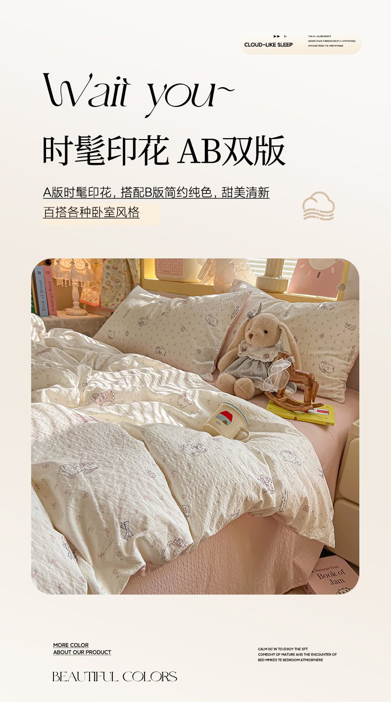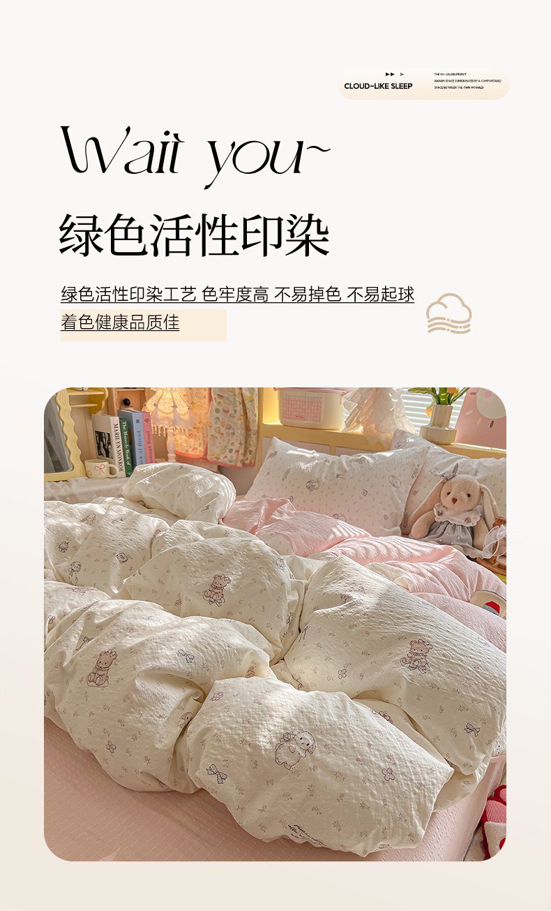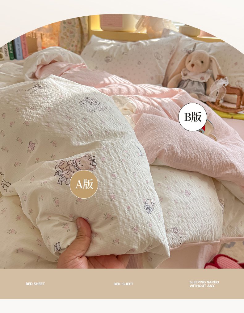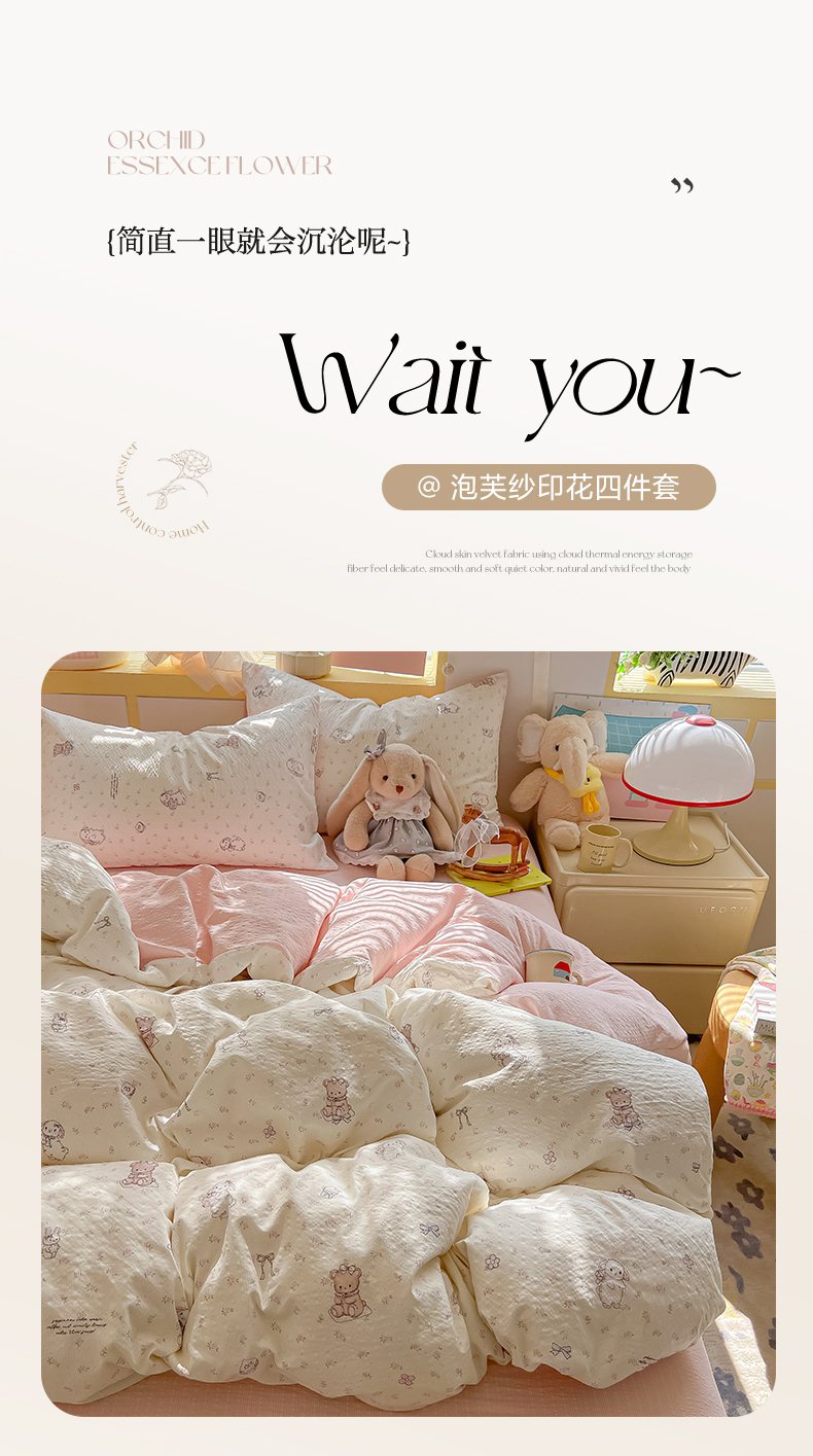 当前位置: 91家纺网 > 商品网购 > 床品套件 > 四件套 > 其它四件套 > 韩巢家纺 2026新款泡芙纱四件套 悦悦小兔