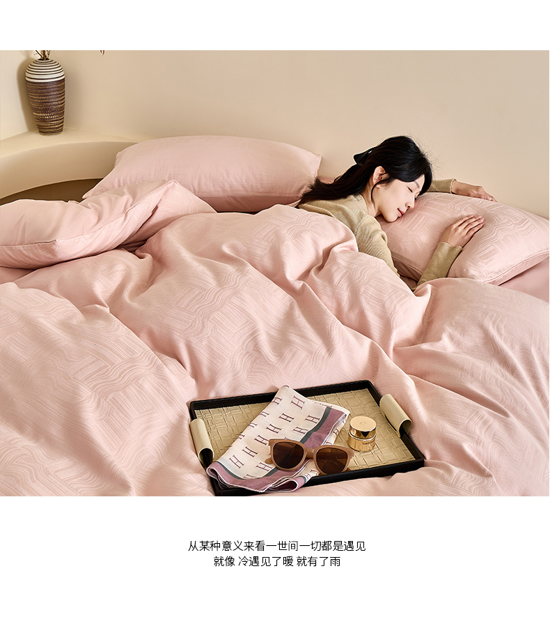 (总)九沐良品 2025新款莱赛尔兰精天丝棉色织大提花四件套,芙尼-粉,芙尼-灰,漫野-灰,漫野-绿,暮云-粉,暮云-绿,暮云-紫,雾野山亭-灰,雾野山亭-紫