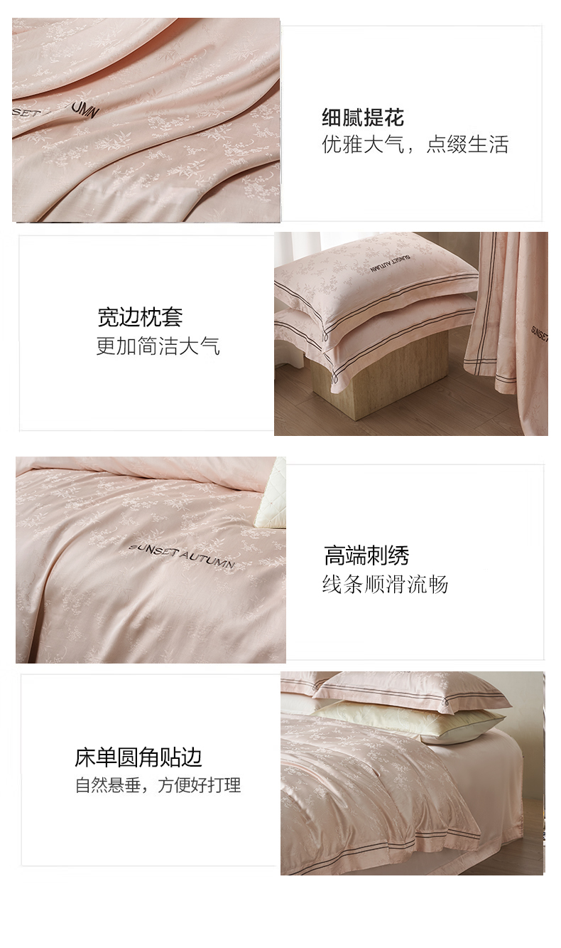 (总)诗黛尔 2026春夏新款长绒棉刺绣四件套黎境系列,黎境-香槟金,黎境-极光蓝,黎境-卡其色,黎境-落樱粉,黎境-绅士灰