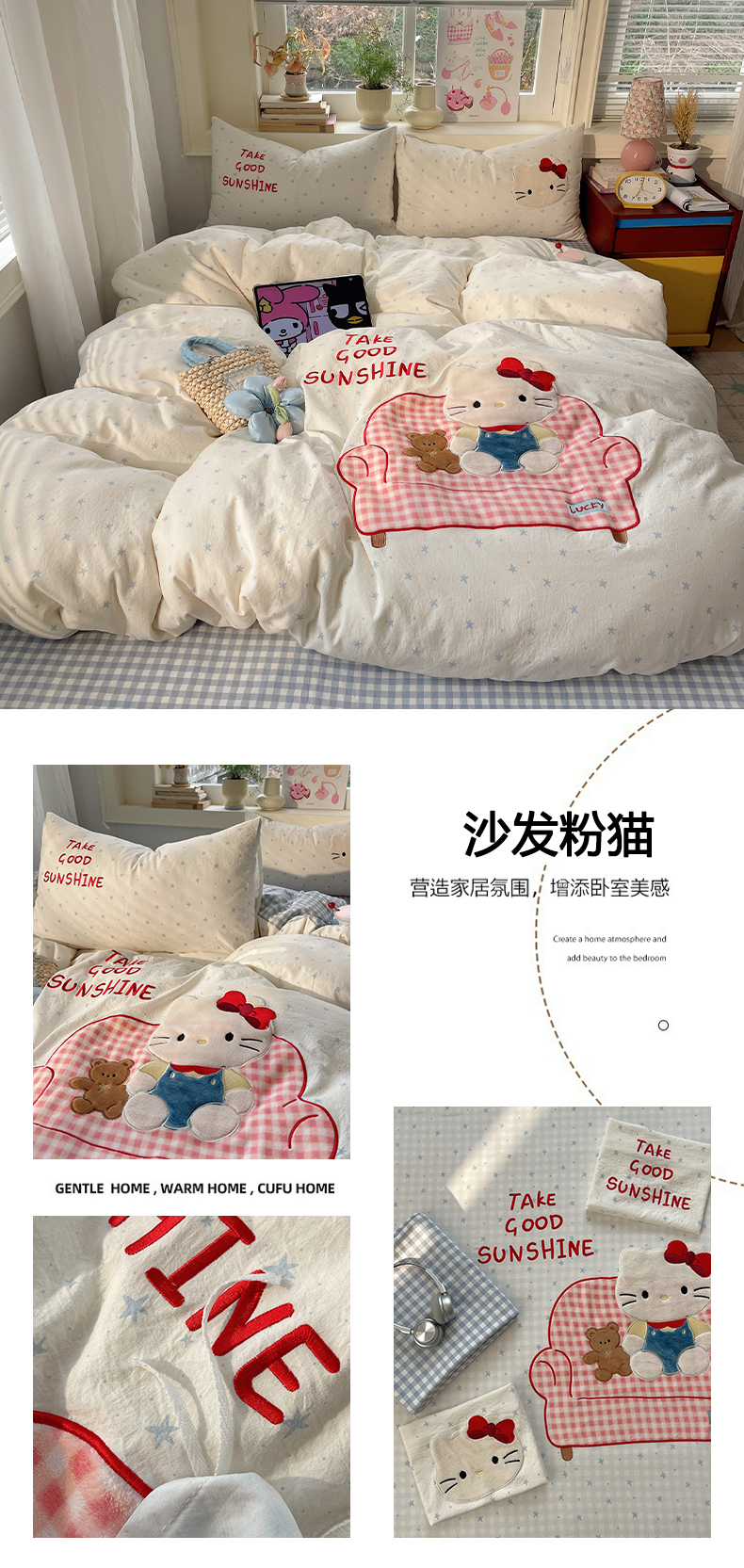 当前位置: 91家纺网 > 商品网购 > 床品套件 > 四件套 > 其它四件套 > 贝扬思家纺 2026春夏新款云朵贴布绣绣花四件套 沙发蓝猫