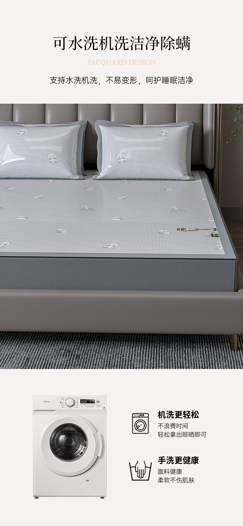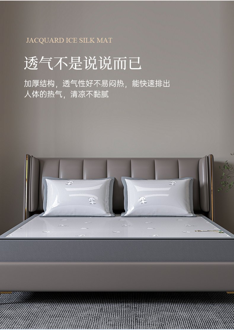 (总)小牛席业 2026新款半定位大提花凉感冰丝席(床笠款)凉席竹席藤席冰藤席乳胶席豆豆席,灰色,粉色,蓝色,香槟