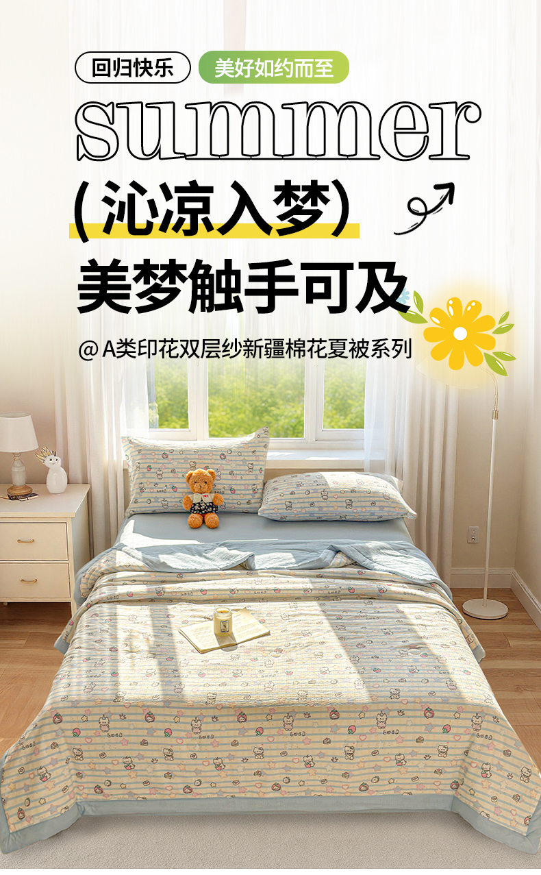 (总)晓时候 2026新款水洗棉夏被新疆棉花被印花夏凉被空调被薄被子,小熊院长,呆萌企鹅,滑板萌狗,黄油小熊,卡皮巴拉,开心小狗,恐龙乐园,曼塔玫瑰,清新小花,森林茶会,夏日风情,心想事橙,熊猫派对,郁金香-紫