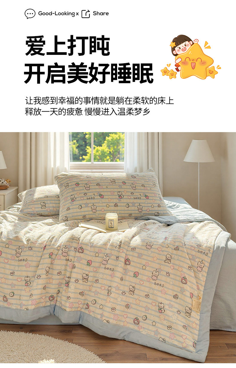 晓时候 2026新款A类云感双层纱夏被棉花被小清新印花夏凉被空调被 星星喵