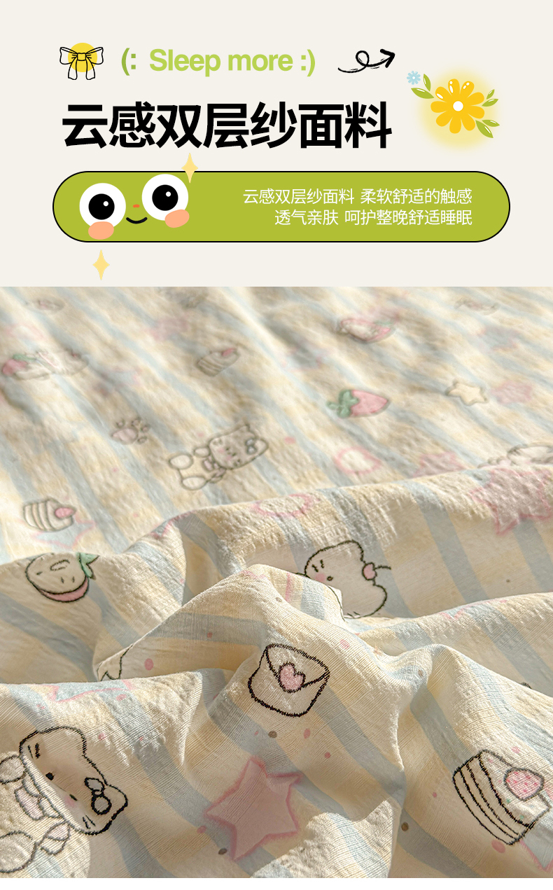 (总)晓时候 2026新款A类云感双层纱床单三件套单品单件床单,安然入夏,缤纷水果,冰川灰,豆蔻,多彩波点,繁花,蝴蝶结-紫,花间兔,蓝色泡芙狗,洛神花间,萌宠派对,萌萌星星人,奶芙狗,柠檬黄,芊芊花语,牵牛紫,俏皮狗,青春蓝,青竹绿,甜甜西高地,甜心女孩,小确幸,星星喵,樱花粉,云朵白