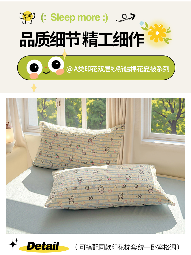 商品名称:晓时候 2026新款A类云感双层纱夏被棉花被小清新印花夏凉被空调被 星星喵