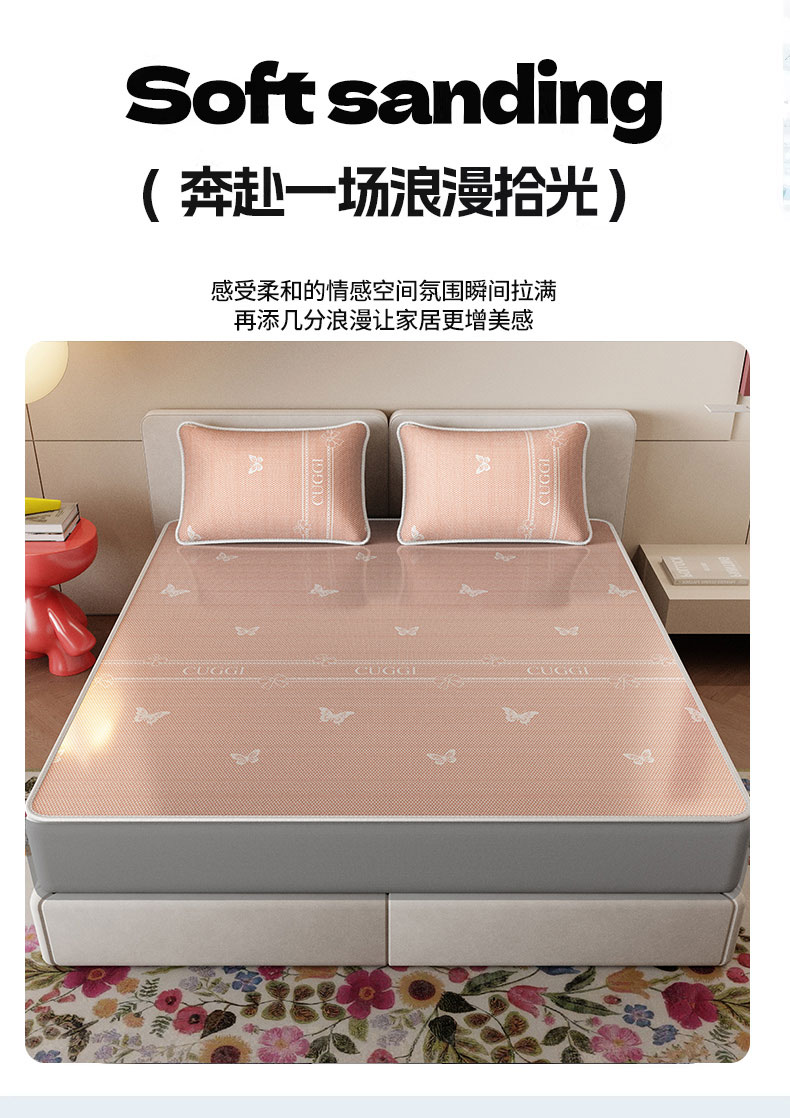 当前位置: 91家纺网 > 商品网购 > 床上用品 > 凉席 > 冰丝席 > 福来临家纺 2026新款印花冰丝席席子凉席-床席款床笠款 蝴蝶粉-床席款