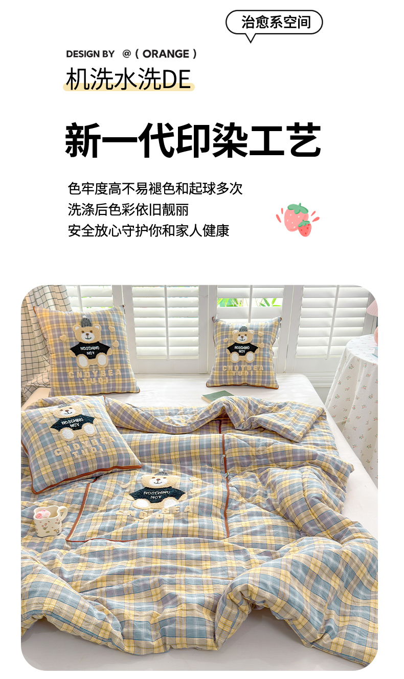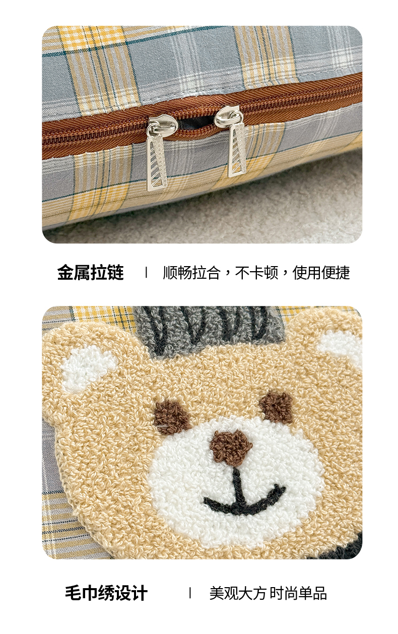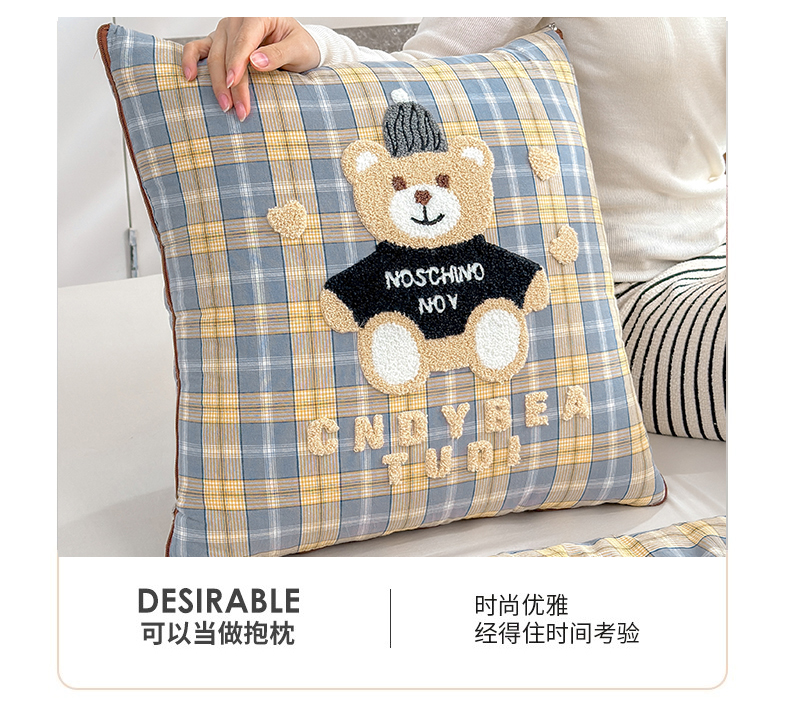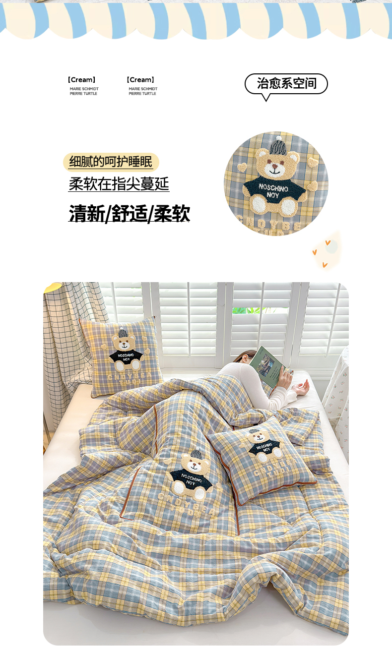 (总)宝马家纺(原梦童画) 2026新款全棉色织帽子熊抱枕被,可爱熊-蓝,可爱熊-黄,可爱熊-灰,可爱熊-橘