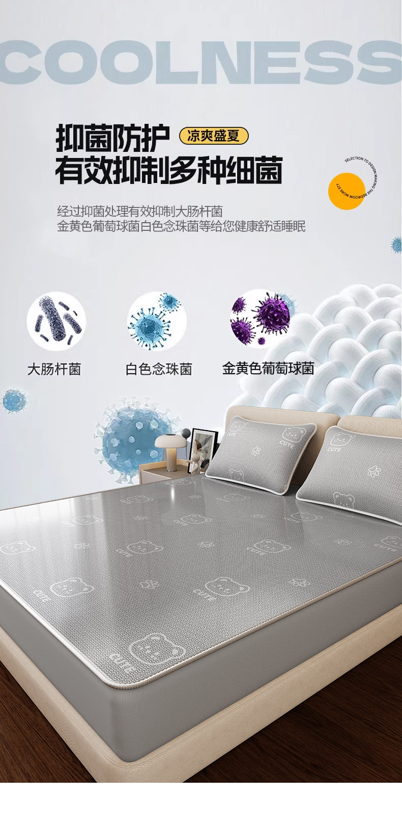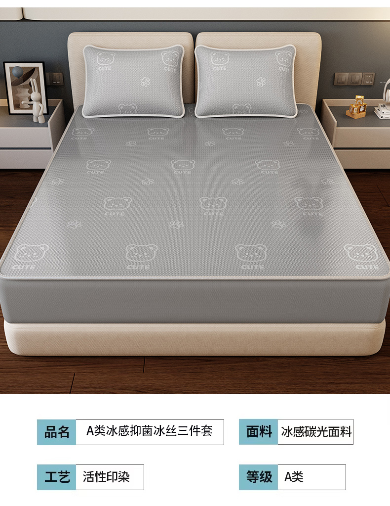 当前位置: 91家纺网 > 商品网购 > 床上用品 > 凉席 > 冰丝席 > 福来临家纺 2026新款印花冰丝席席子凉席-床席款床笠款 开心小熊灰-床笠款
