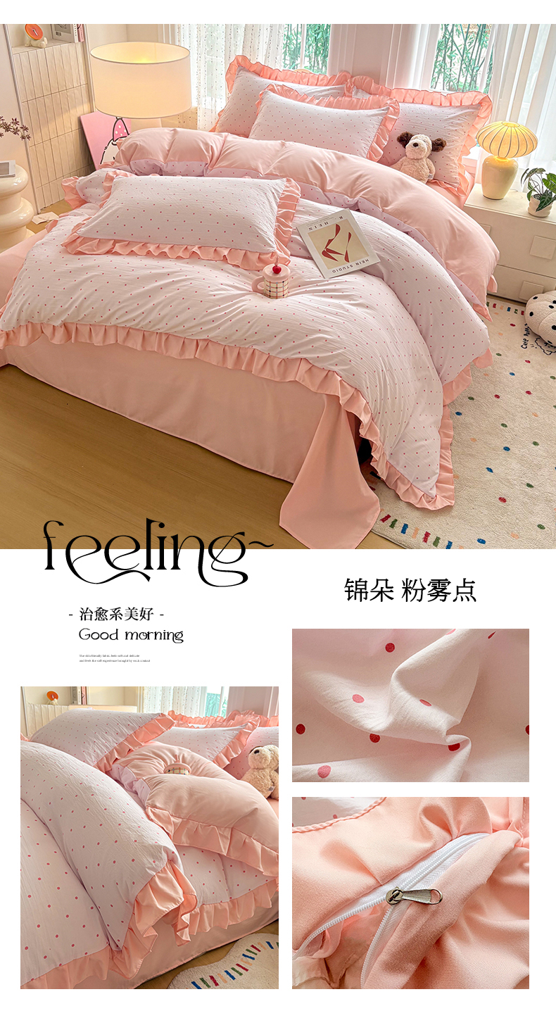 当前位置: 91家纺网 > 商品网购 > 床品套件 > 四件套 > 其它四件套 > 铠畅 2026春夏新款锦朵系列 韩版水洗棉小清新古棉床单床笠四件套 锦朵 粉雾点