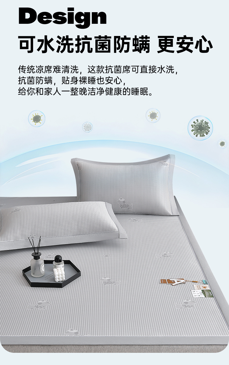 (总)小牛席业 2026新款小冰块大象凉感冰丝席凉席竹席藤席冰藤席乳胶席豆豆席,粉色,香槟,灰色,绿色,蓝色