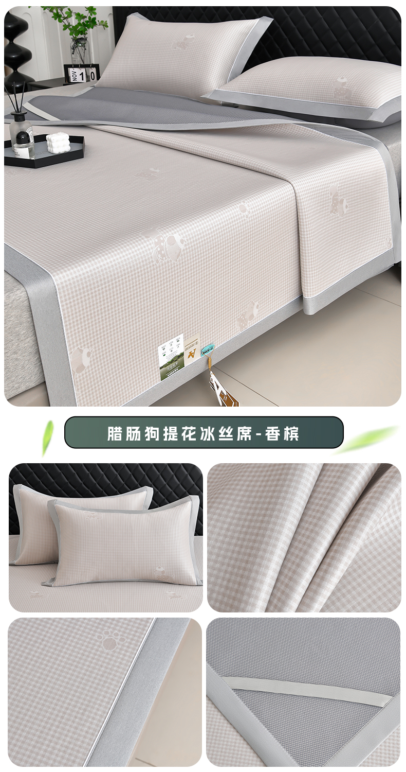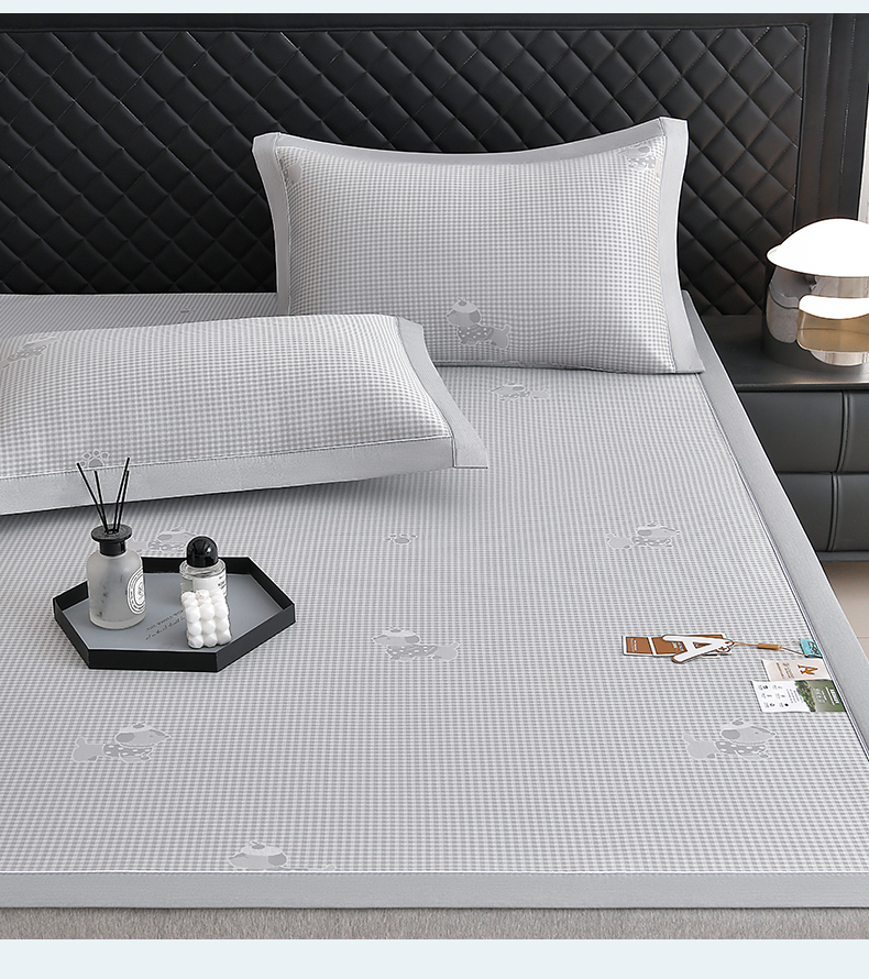 (总)小牛席业 2026新款半定位大提花凉感冰丝席(床笠款)凉席竹席藤席冰藤席乳胶席豆豆席,灰色,粉色,蓝色,香槟