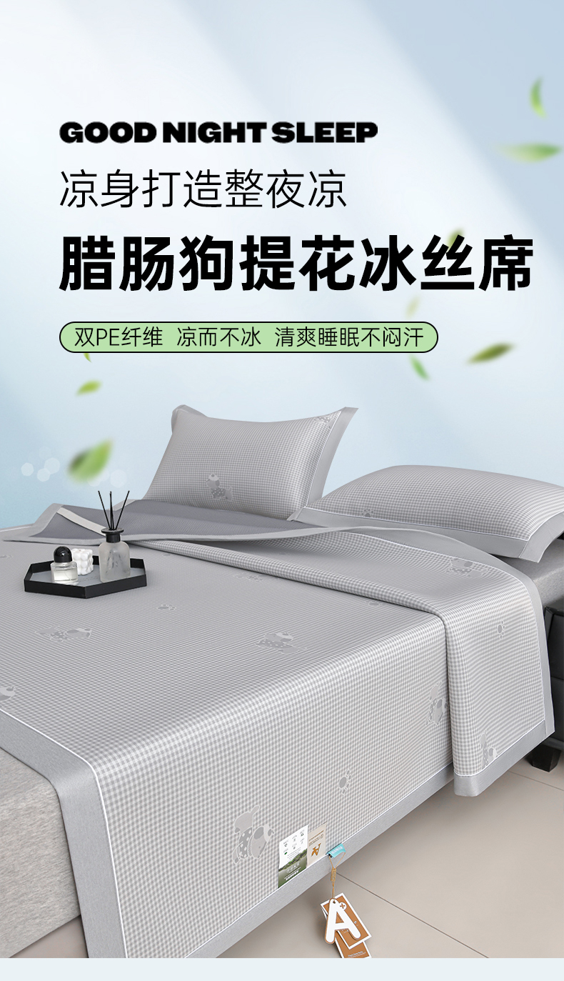 小牛席业 2026新款【实拍风格】双PE高凉感-腊肠狗格纹提花冰丝席凉席竹席藤席冰藤席乳胶席豆豆席 蓝色