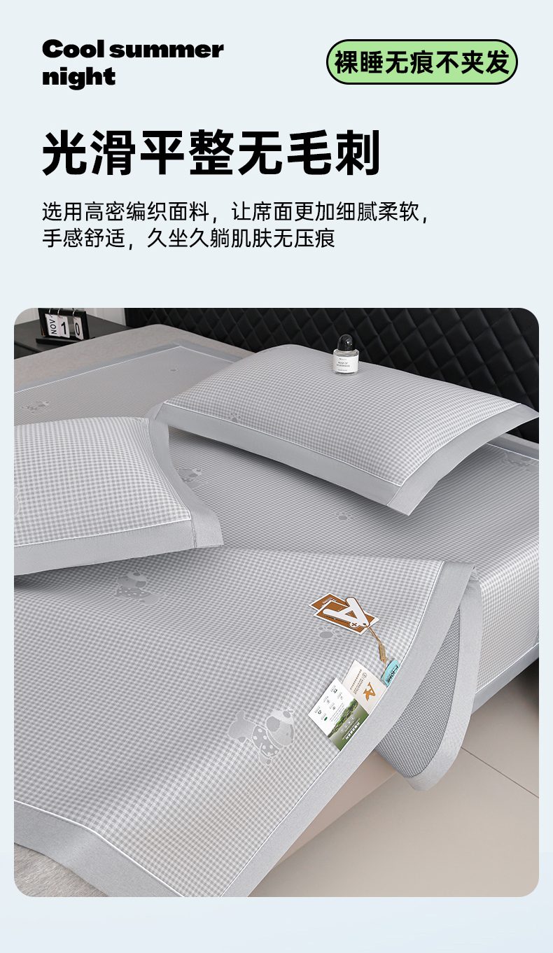 (总)小牛席业 2022新款可机洗抗菌冰藤席凉席竹席冰丝席,流星雨粉色,流星雨灰色,流星雨咖色,魔幻方格粉色,魔幻方格灰色,魔幻方格咖色,色织粉色,色织灰色,色织咖色,色织蓝色