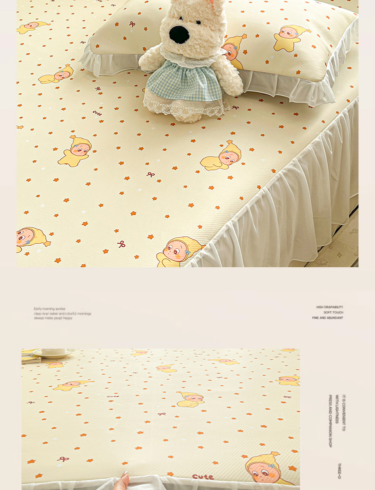 川悦生活 2026新款雪纺冰丝床裙凉席三件套 床裙恰星星