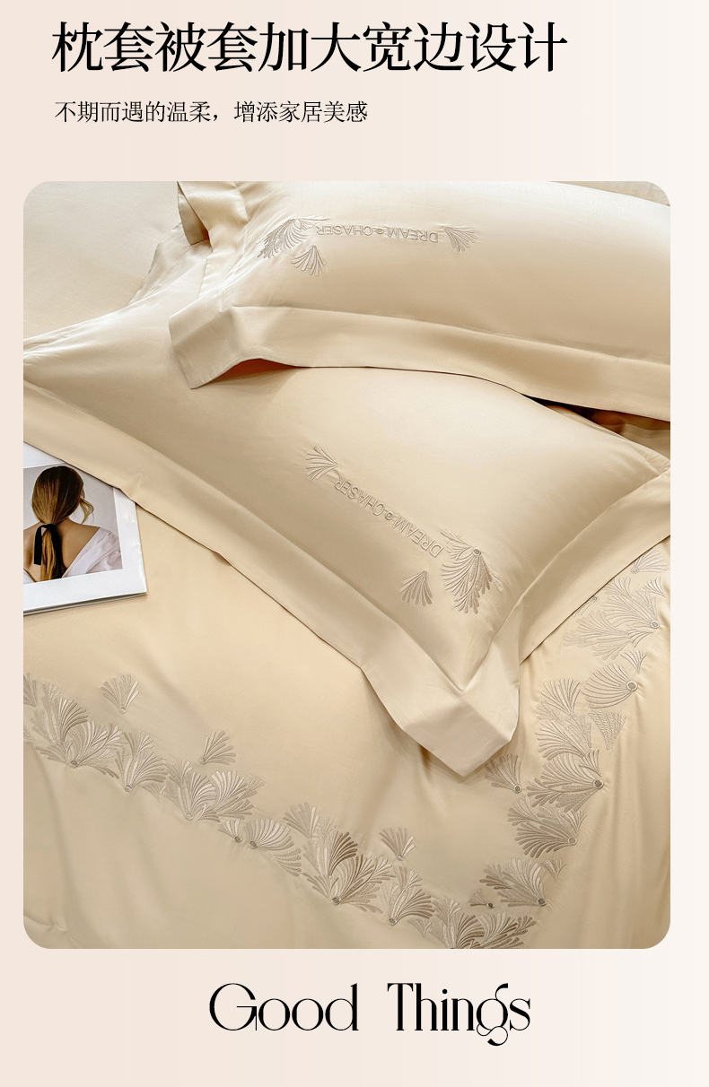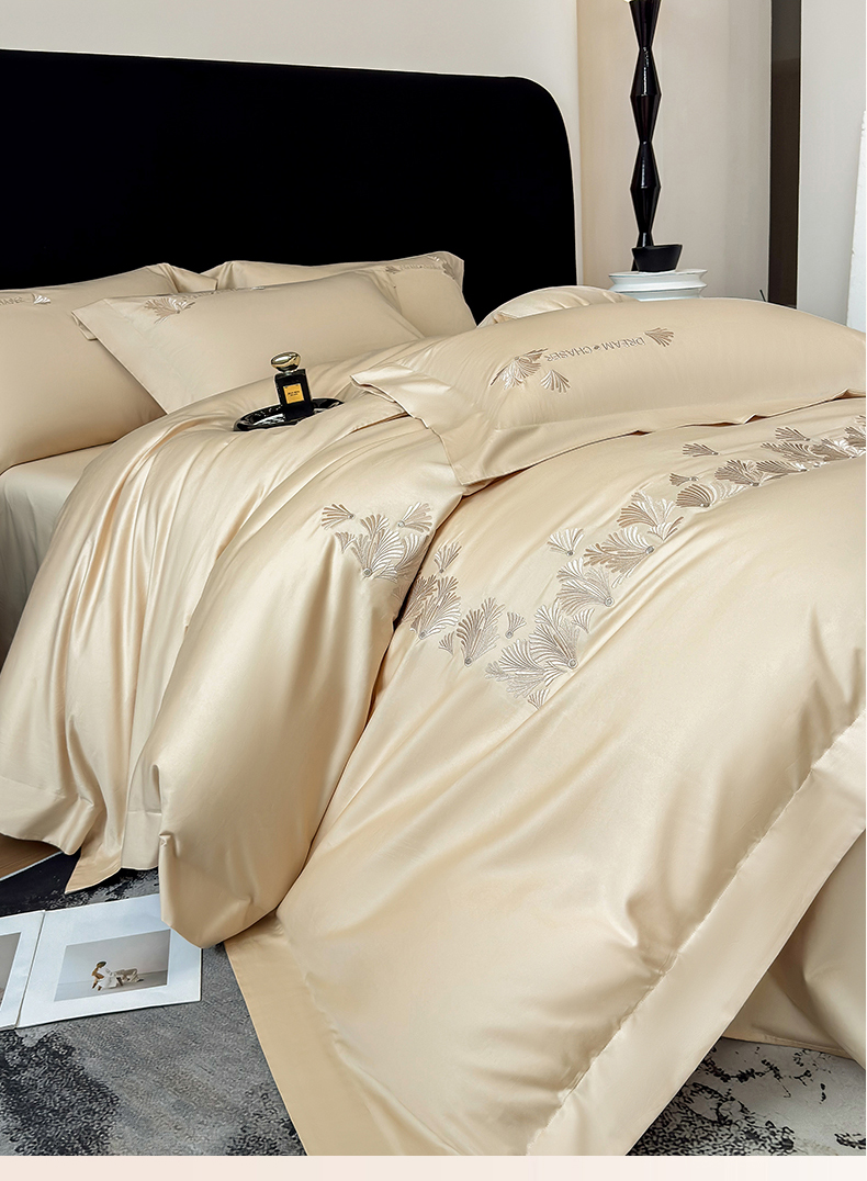 (总)星蕴家纺 2026新款双股长绒棉全棉纯棉刺绣四件套-柏林系列,柏林 贵族白,柏林 星空灰,柏林 云山蓝,柏林 香槟金,柏林 可可粉