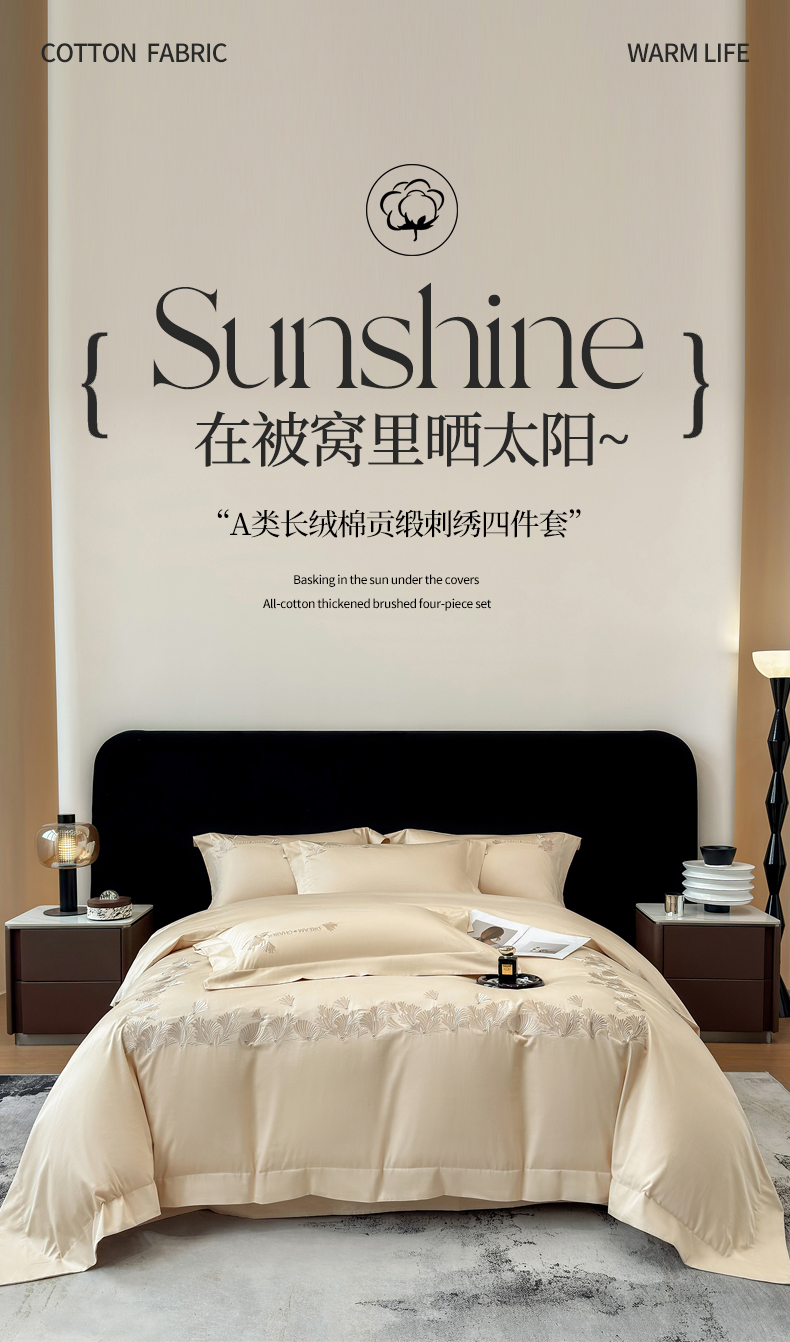 (总)星蕴家纺 2026新款贡缎长绒棉四件套-简爱,简爱-珍珠白,简爱-高级灰,简爱-香槟金,简爱-云山蓝,简爱-可可粉
