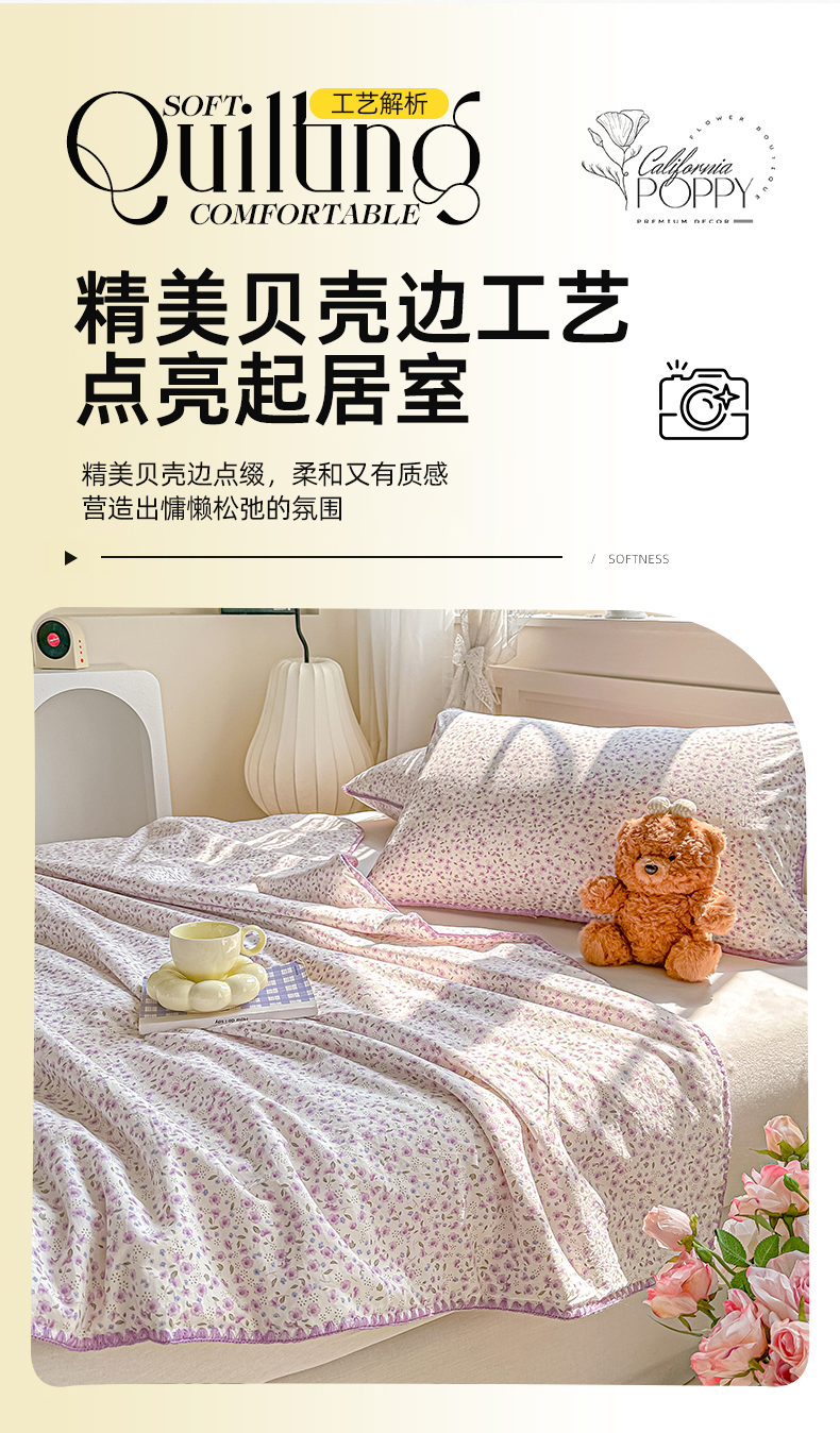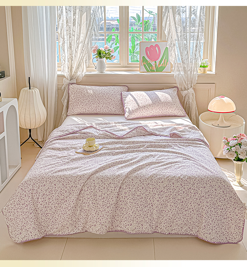 商品名称:圣尔雅家纺 2026新款印花夏被小碎花贝壳绣皱皱棉夏凉被空调被 荔椿紫