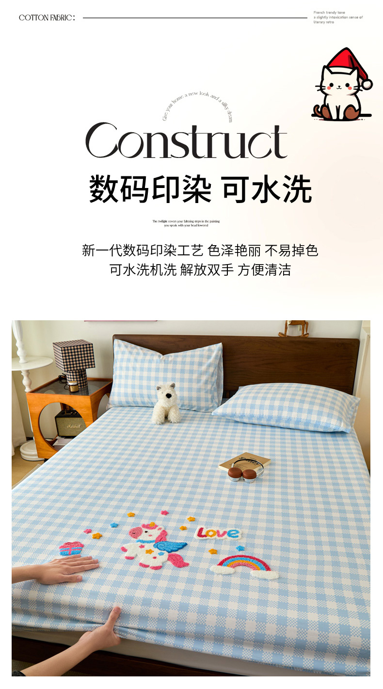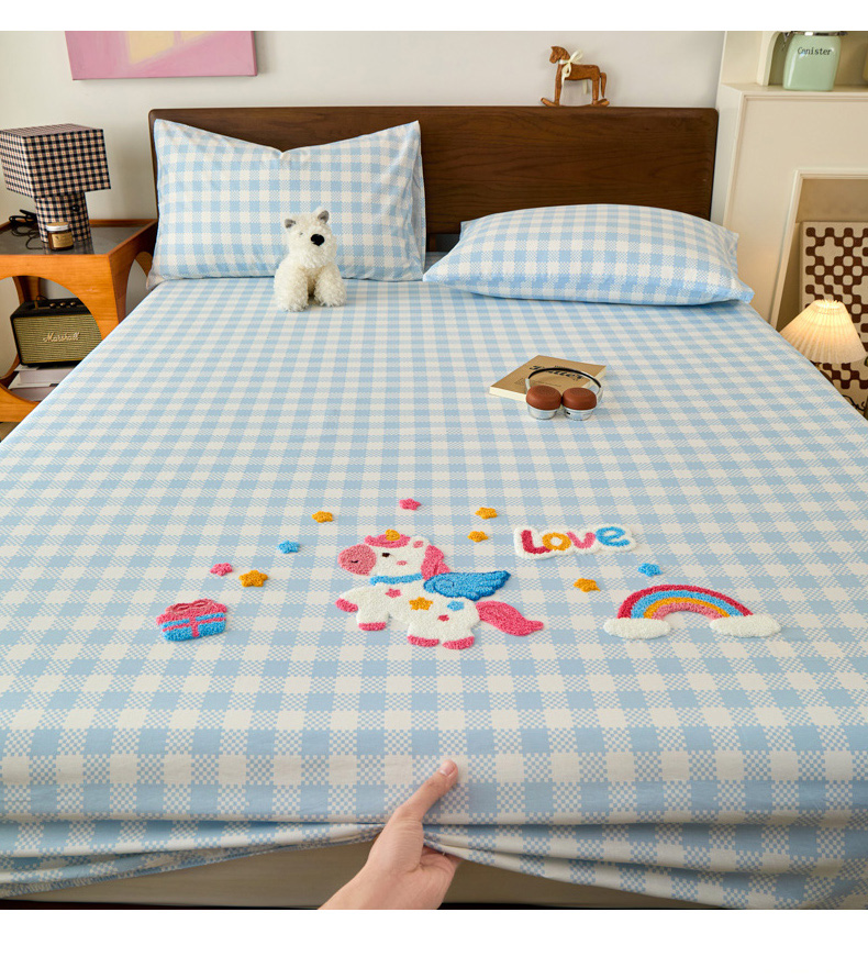 倾慕家纺 2026新款A类全棉毛巾绣系列单床笠 床笠彩虹马