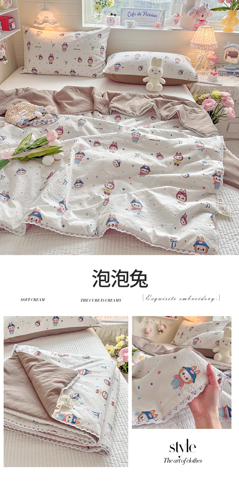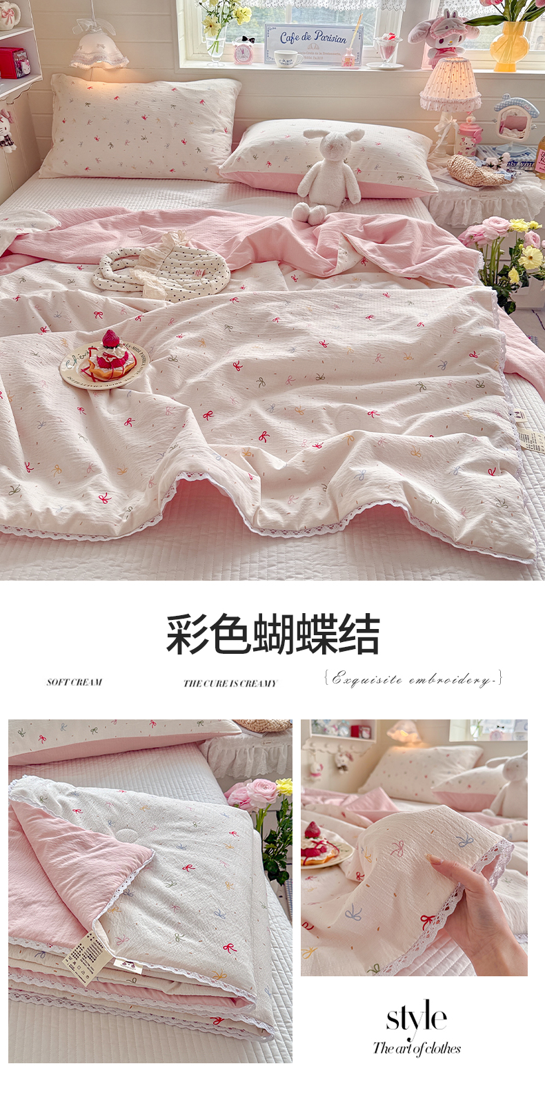 (总)名兮家居 2026新款亲肤A类皱皱纱夏被夏凉被空调被,彩色蝴蝶结,粉色小兔,兰香入梦,蓝条日记,美娜,蜜芽兔,泡泡兔,时光结,天使猫咪,音乐家,紫樱桃