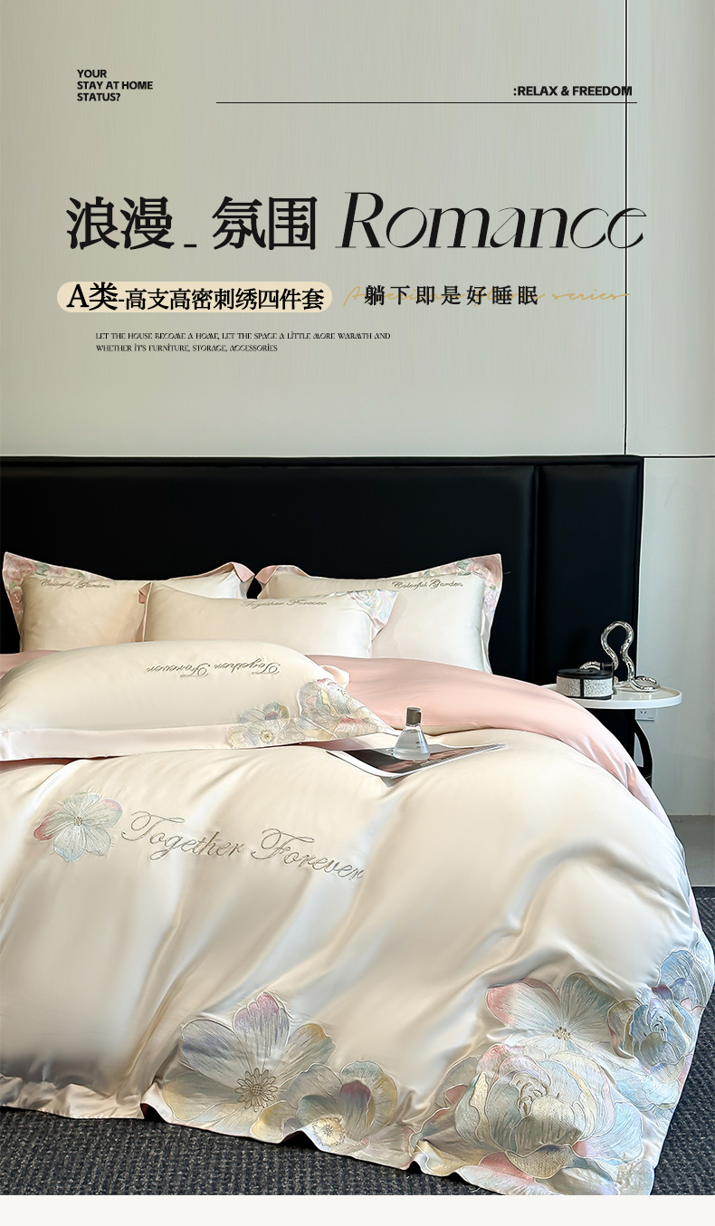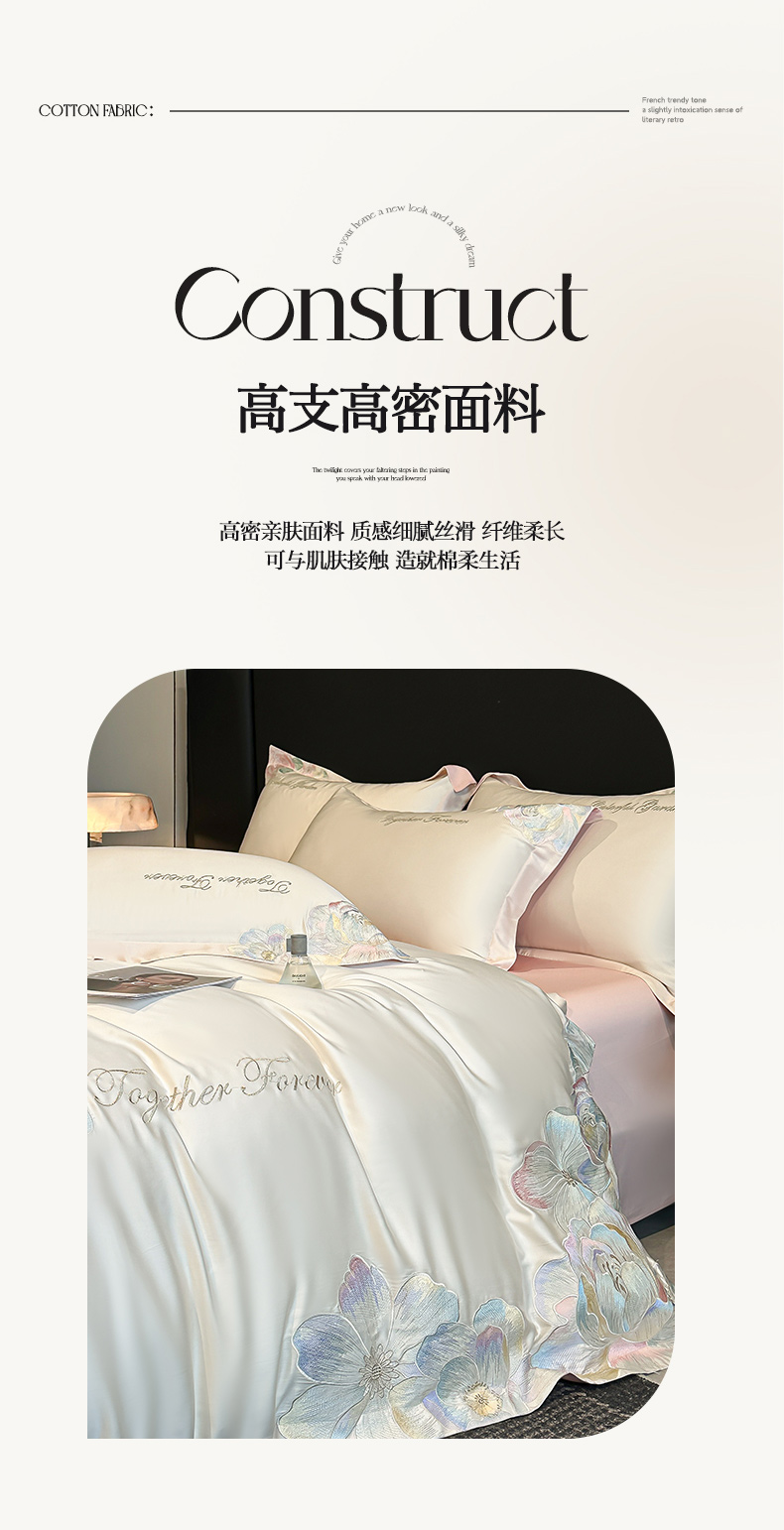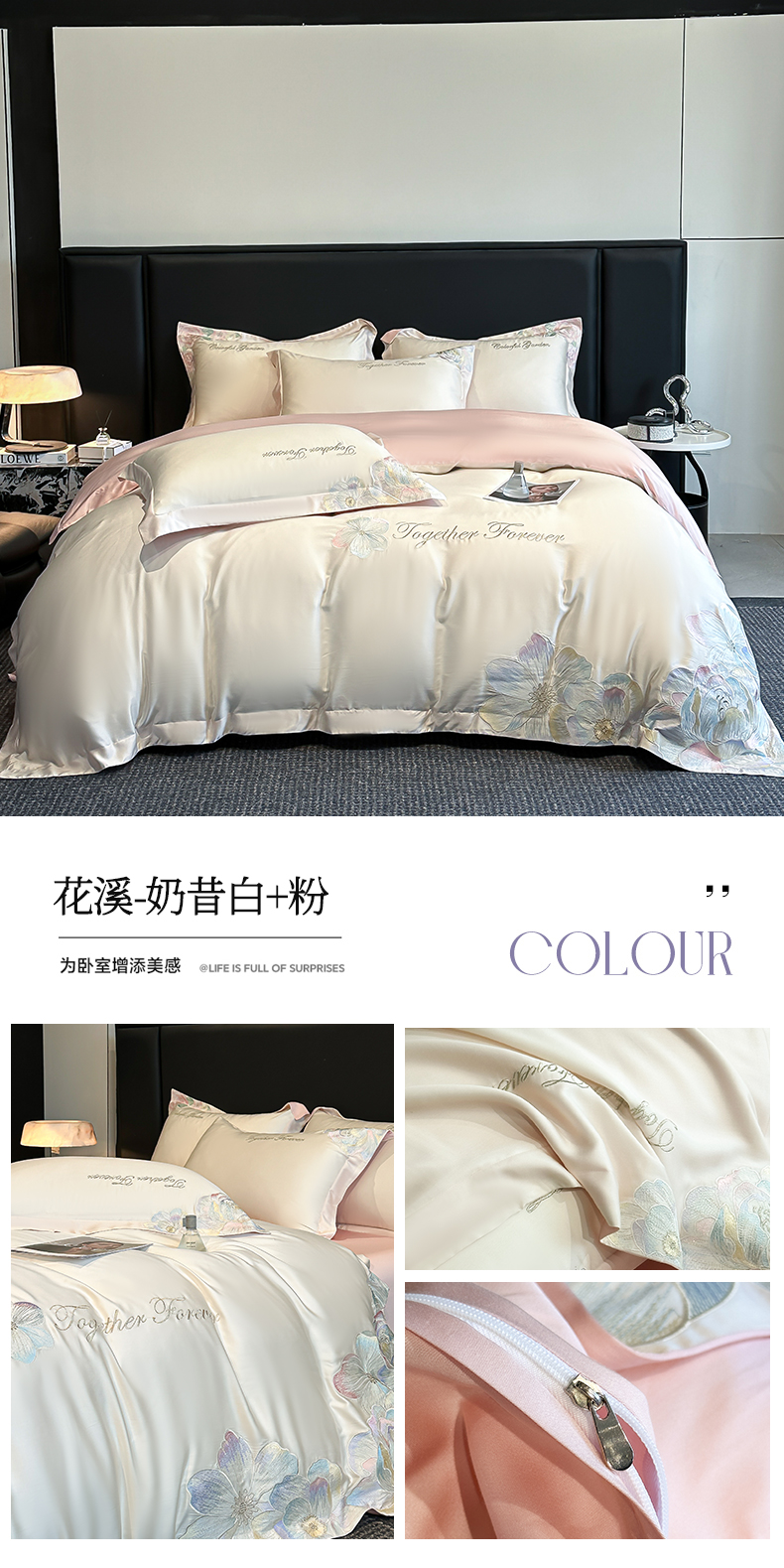 当前位置: 91家纺网 > 商品网购 > 床品套件 > 四件套 > 其它四件套 > 润锦云 2026新款高支高密刺绣四件套-花溪系列 花溪-奶昔白+粉