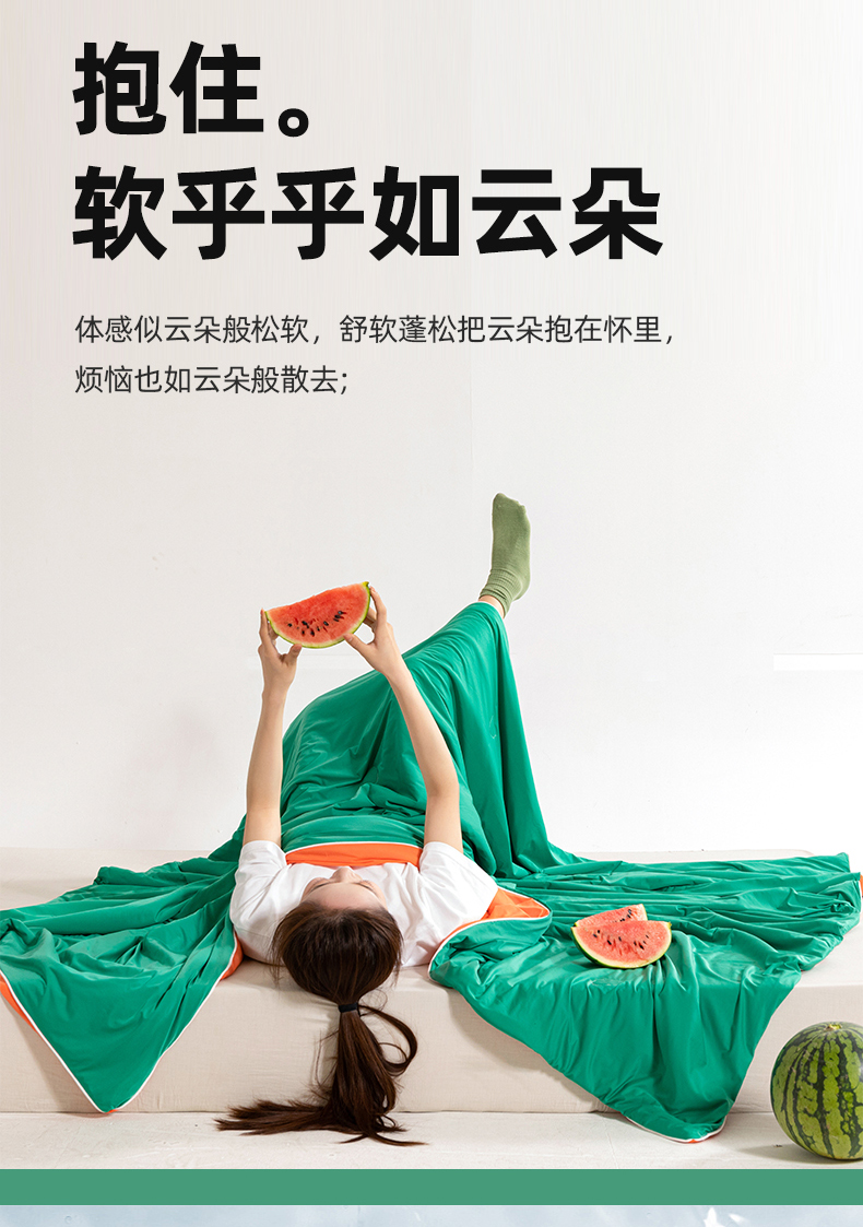 商品名称:帕芬鸟家纺 2026新款凉感丝夏被高支高密凉感丝夏被排湿透气凉感丝西瓜夏被 凉凉西瓜-绿配红