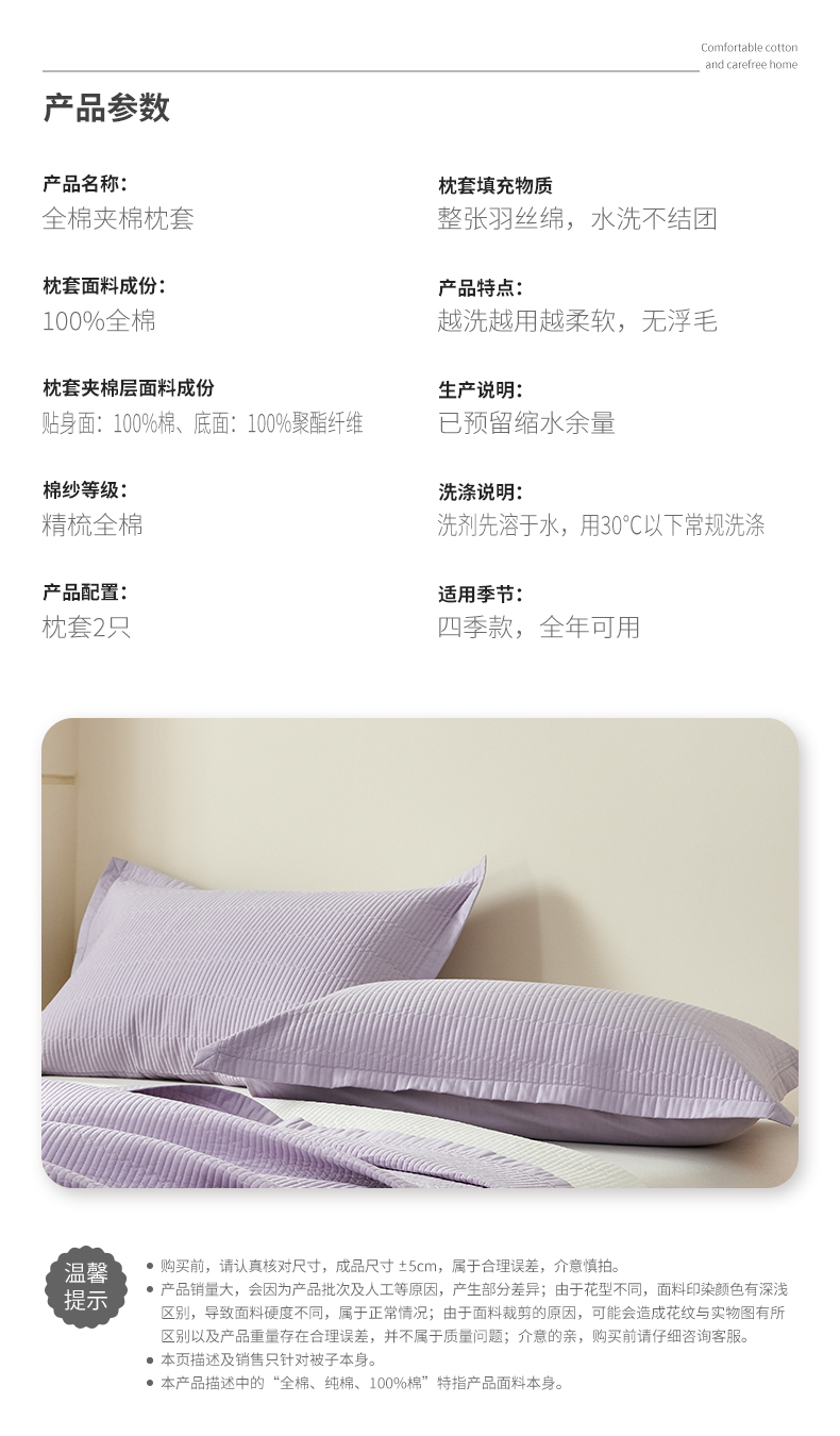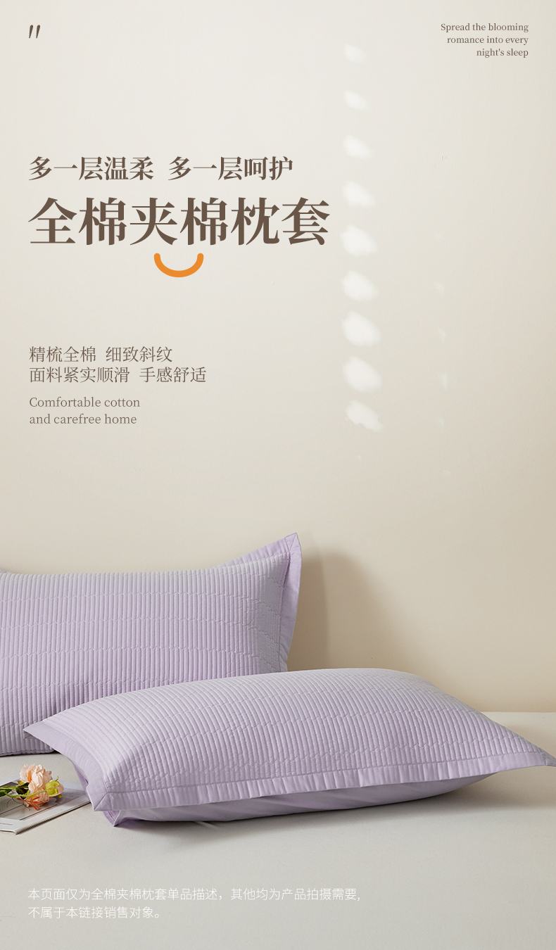 商品名称:元元家居(元元被业) 2026新款全棉纯棉13372系列夹棉枕套单件枕套单品单枕套-纯色款 罗兰紫