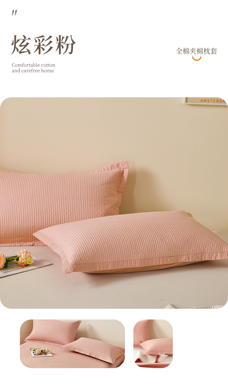 (总)元元家居(元元被业) 2026新款全棉纯棉13372系列夹棉枕套单件枕套单品单枕套-纯色款,果粉,罗兰紫,麦田绿,天梦蓝,炫彩粉,雅灰