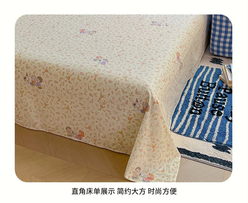 简约家纺 2026新款全棉斜纹12868四件套单床单系列 史努比花海