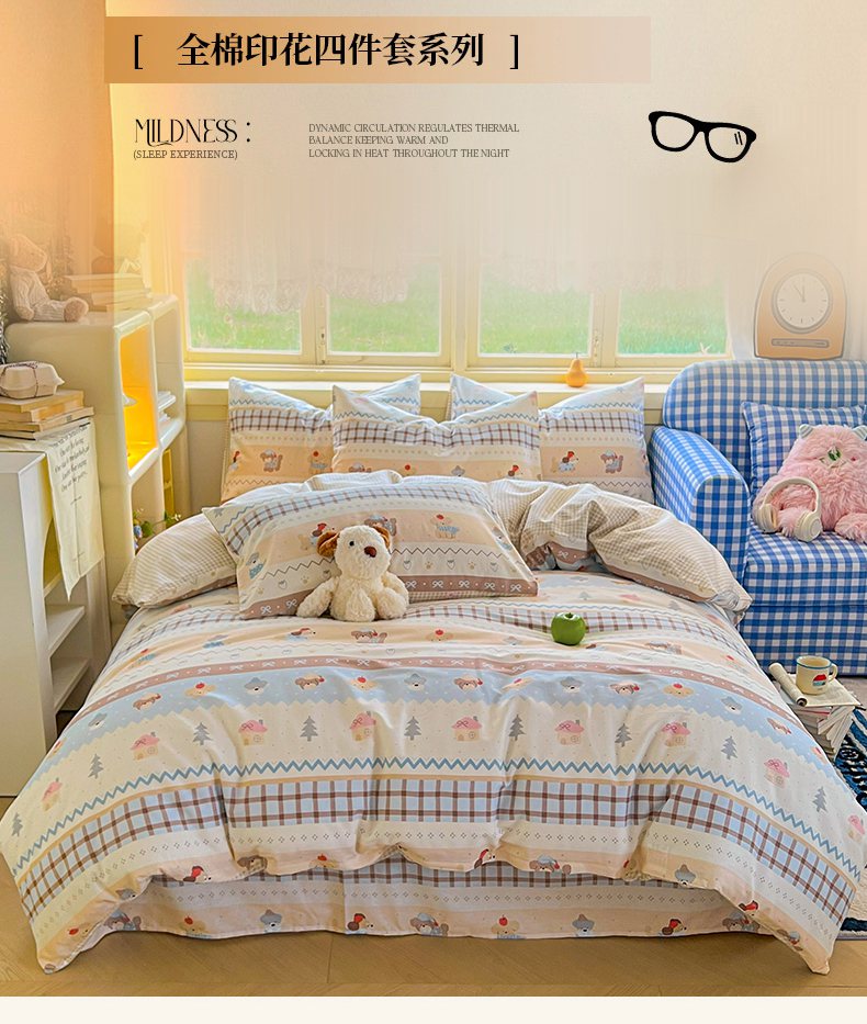 (总)简约家纺 2026新款全棉印花学生宿舍三件套系列,费尔岛小狗,粉色花园兔-粉,歌尔-粉,格雅,故事小黄花,花满情,橘子格,可爱萌犬,蓝茵小兔,木马心愿,史努比花海,恬淡小花,晚风私语,维西兔,小奶兔,星小象-米,星语星愿,雅柔,颜诺,怡花