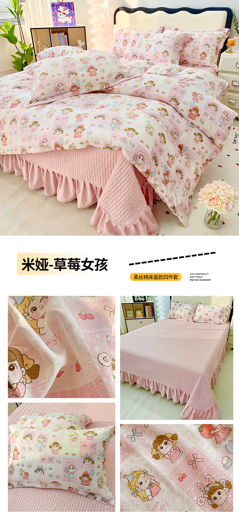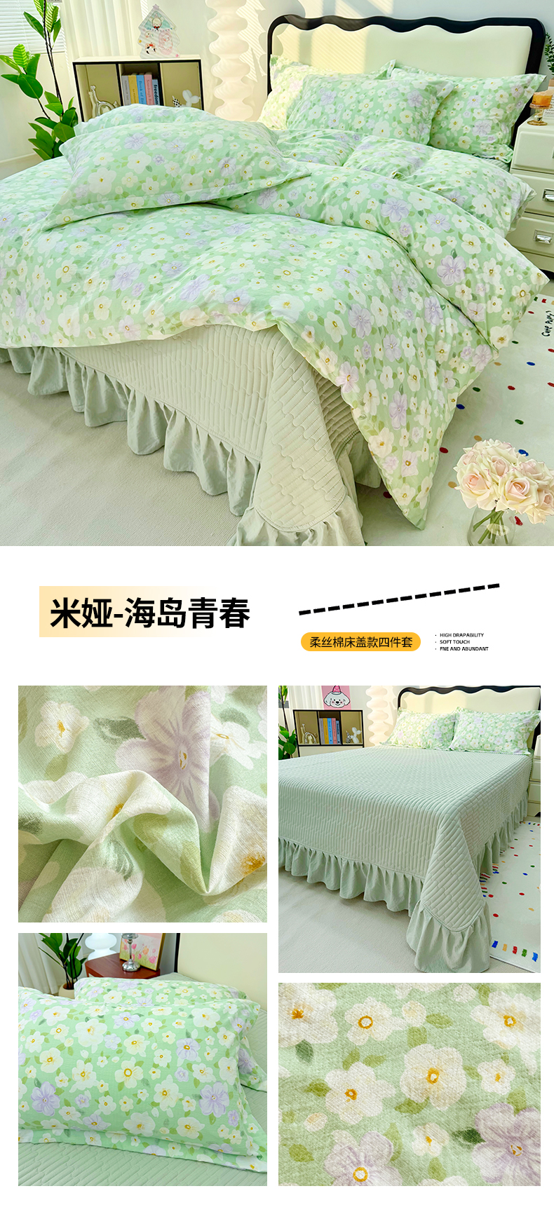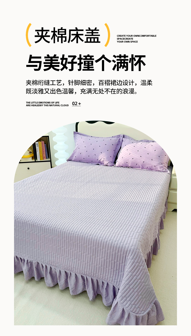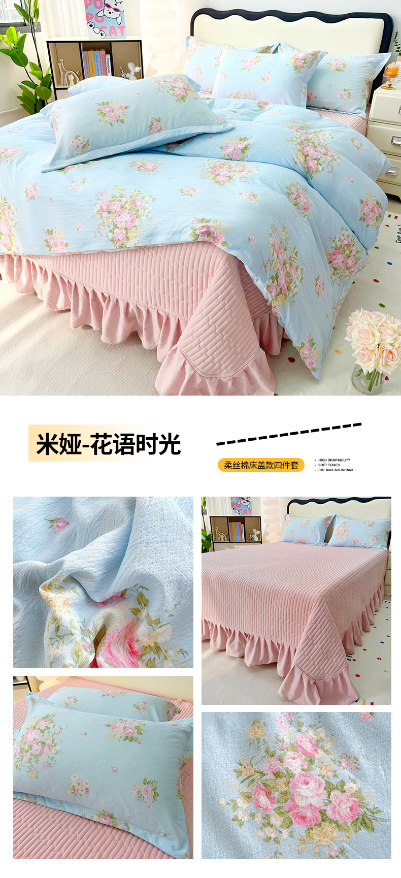 当前位置: 91家纺网 > 商品网购 > 床品套件 > 四件套 > 其它四件套 > 九诺家纺 2026新款丝柔棉皱皱纱花边床盖四件套 米娅-浪漫心动