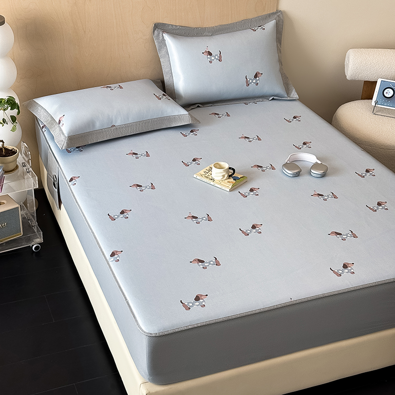 懒猫家纺 2026新款高精密冰丝抗菌防螨床席床笠凉席 蓝色小象床笠