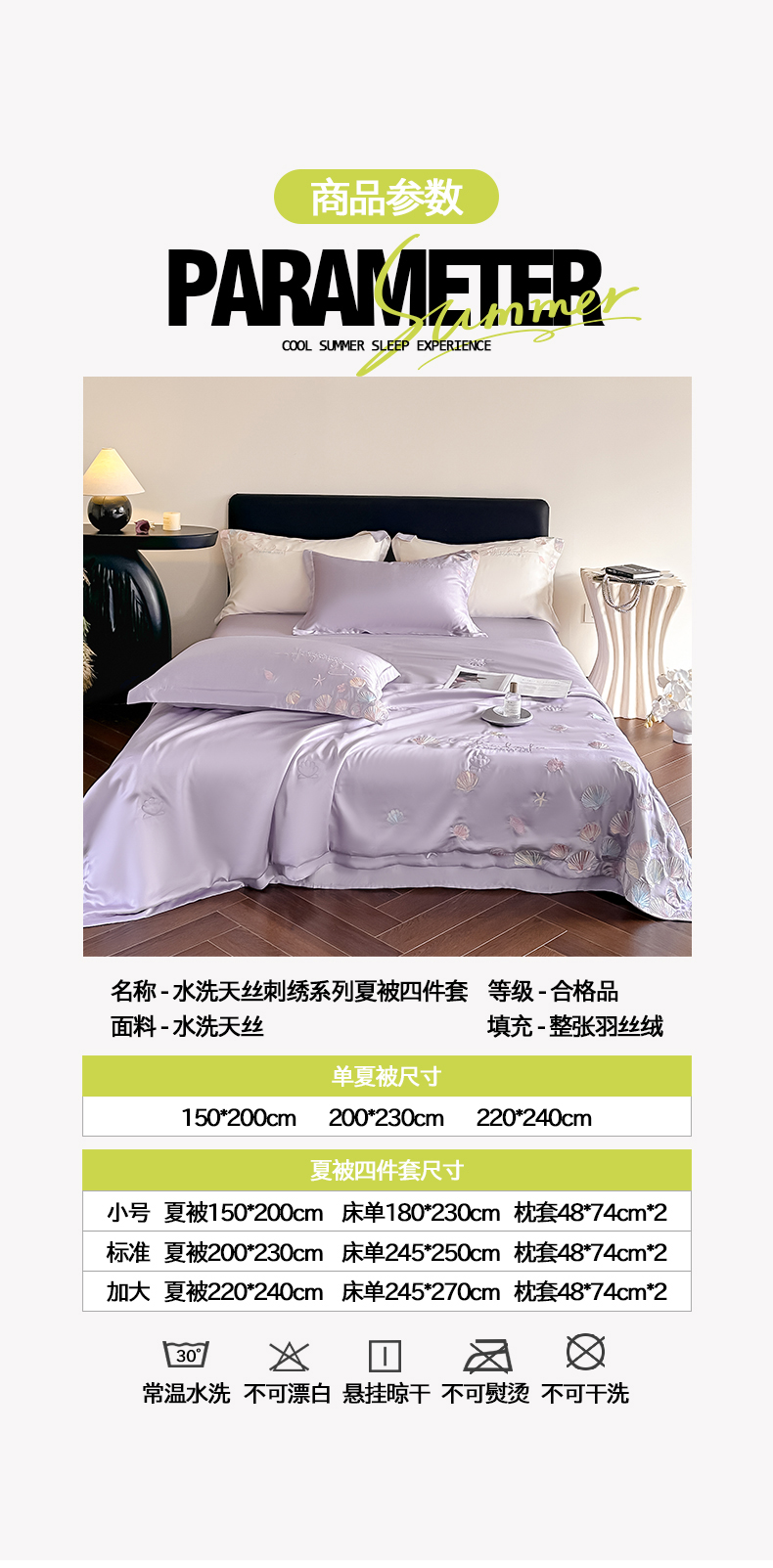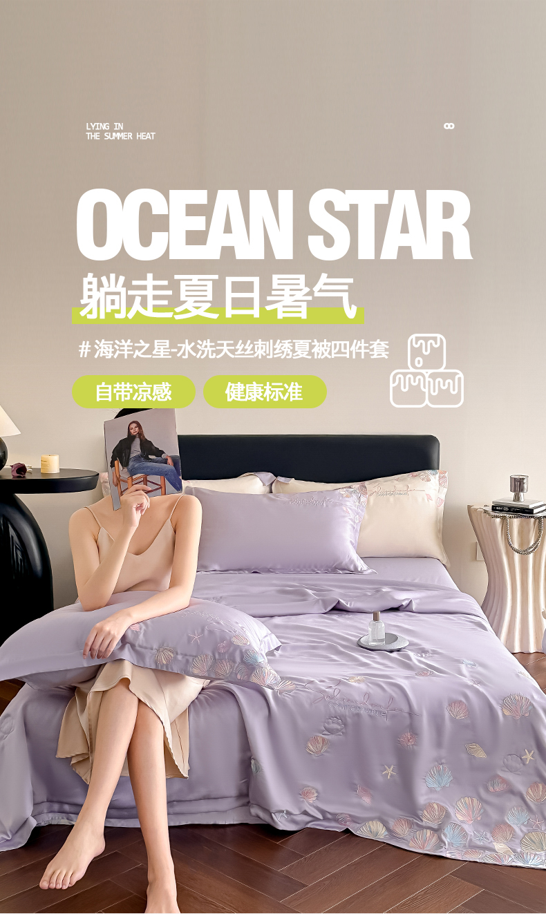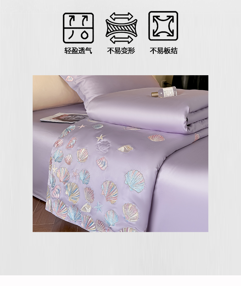 当前位置: 91家纺网 > 商品网购 > 床品套件 > 四件套 > 夏被四件套 > 置顶家纺 2026新款水洗天丝夏被四件套-海洋之星 海洋之星-香芋紫