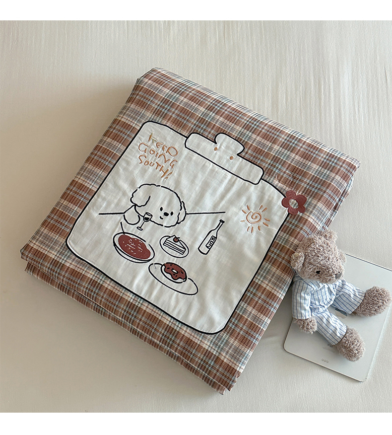 (总)一加一 2026新款全棉双层纱刺绣大豆夏被-棉纱萌趣,狗狗乐园,甜梦乐园,小象乐园,组合图仅供参考