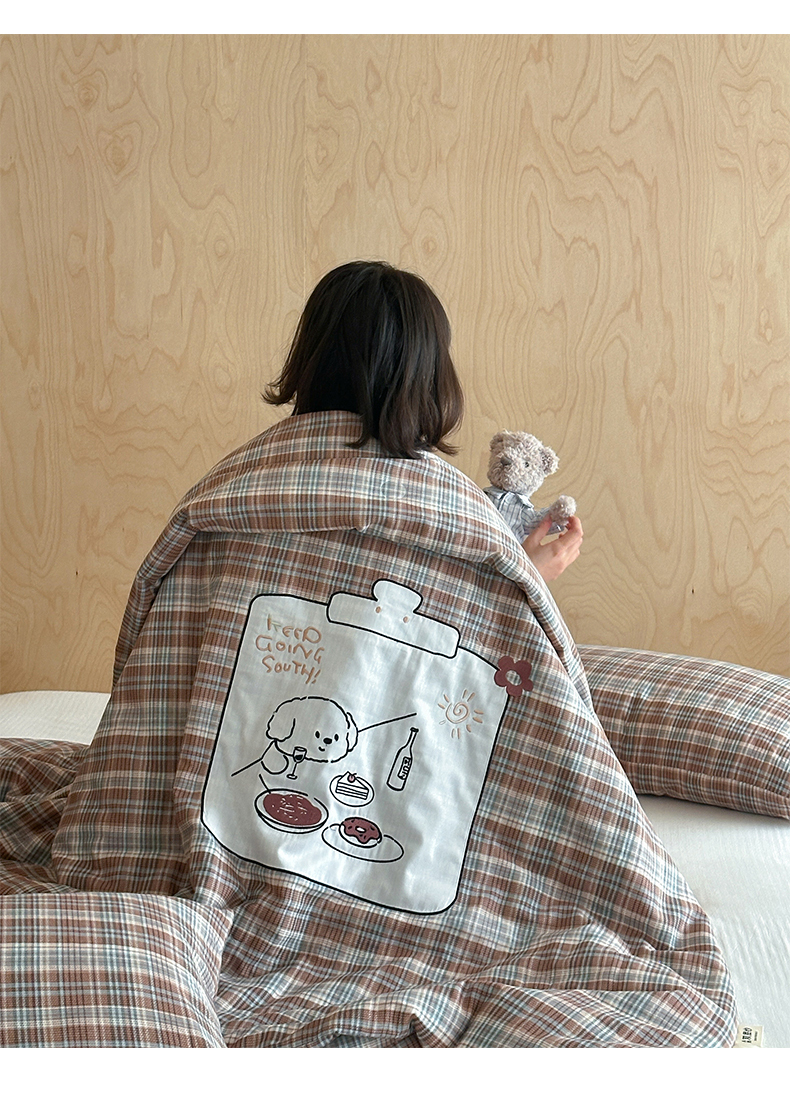 (总)一加一 2025新款全棉双层皱皱纱毛巾绣抗菌大豆被芯,快乐狗,腊肠狗,甜甜小丸子,星愿树,熊猫派对