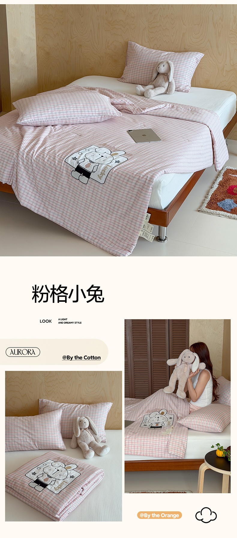 (总)一加一 2026新款全棉纯棉双层纱贴布绣大豆夏被夏凉被空调被-格格乐园,组合图【仅供参考 不可下单】,粉彩早餐熊,粉格小兔,米白小熊,软萌小象,松饼小熊,晚安小象,雾蓝熊语,小熊日记