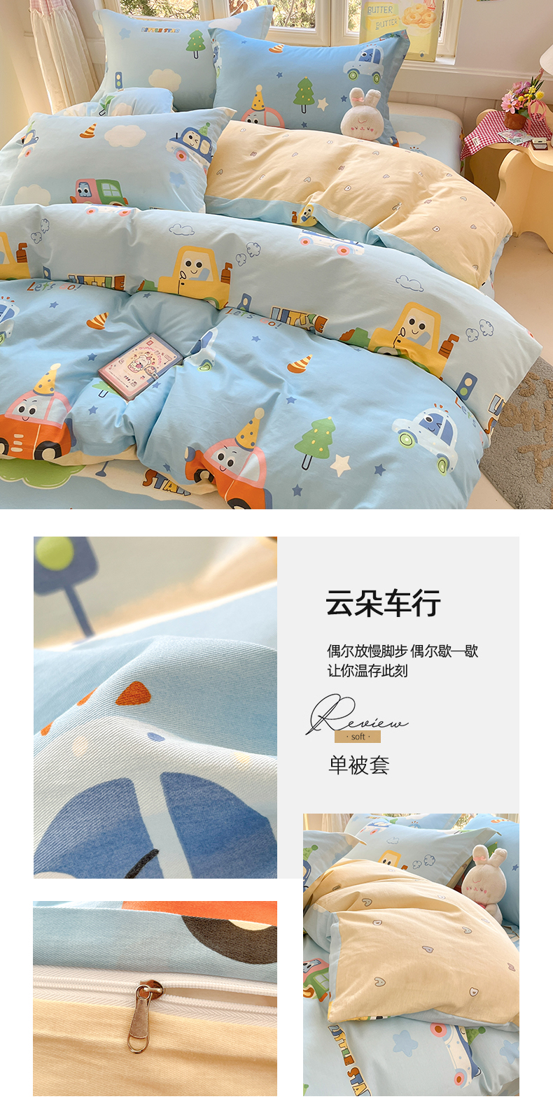• 91家纺网 家纺一手货源 找家纺 莱通家纺 2026春夏新款12868全棉印花四件套单品系列二-单被套提供买家秀,预留缩水率) 熊仔小汽车